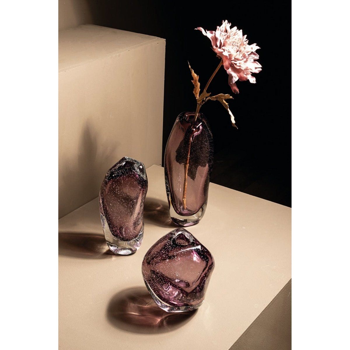 Dank ihrer großzügigen Höhe eignet sich die Bryce Lila Vase hervorragend für langstielige Blumen, dekorative Zweige oder expressive Trockenarrangements. Sie fungiert nicht nur als funktionaler Behälter, sondern als dekoratives Statement-Piece, das auf Sideboards, Tischen oder im Eingangsbereich sofort Aufmerksamkeit auf sich zieht. Die Kombination aus markanter Geometrie, sattem Farbspiel und massiver Glasqualität macht sie zu einem eindrucksvollen Highlight in modernen, eleganten Wohnräumen.