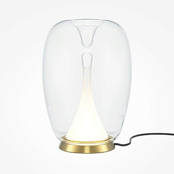 Die Maytoni Splash Tischleuchte (MOD282TL-L15G3K1) besticht durch ihr modernes, minimalistisches Design und die hochwertige Verarbeitung. Ein satiniertes, goldfarbenes Aluminiumgestell trägt einen doppelten Glasschirm – außen transparent, innen leicht verspiegelt – der Tiefe und stilvolle Eleganz verleiht. Die Leuchte setzt dezente, zugleich edle Akzente in jedem modernen Wohn- oder Arbeitsbereich.