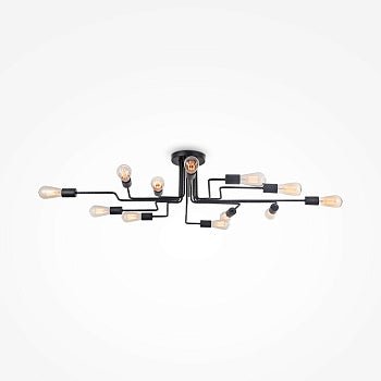 Die Deckenleuchte „Gilbert“ T532CL‑12B von Maytoni verkörpert industriellen Charme in modernem Design. Der schwarze Metallrahmen mit zwölf Fassungen sorgt für eine großzügige und gleichmäßige Beleuchtung und verleiht großen Räumen eine markante, stilvolle Atmosphäre.