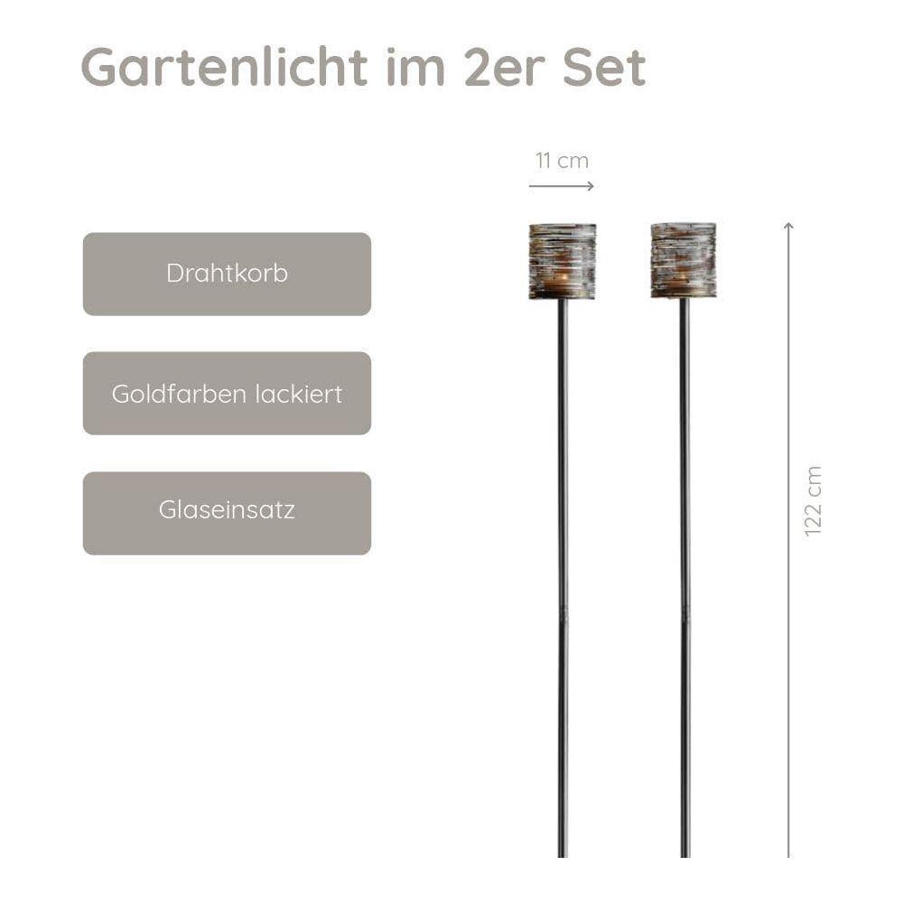 Gartenlicht Drahtkorb-Design, Goldfarbener Innenraum, Glaseinsatz für Kerzen – Windhuk | Philippi