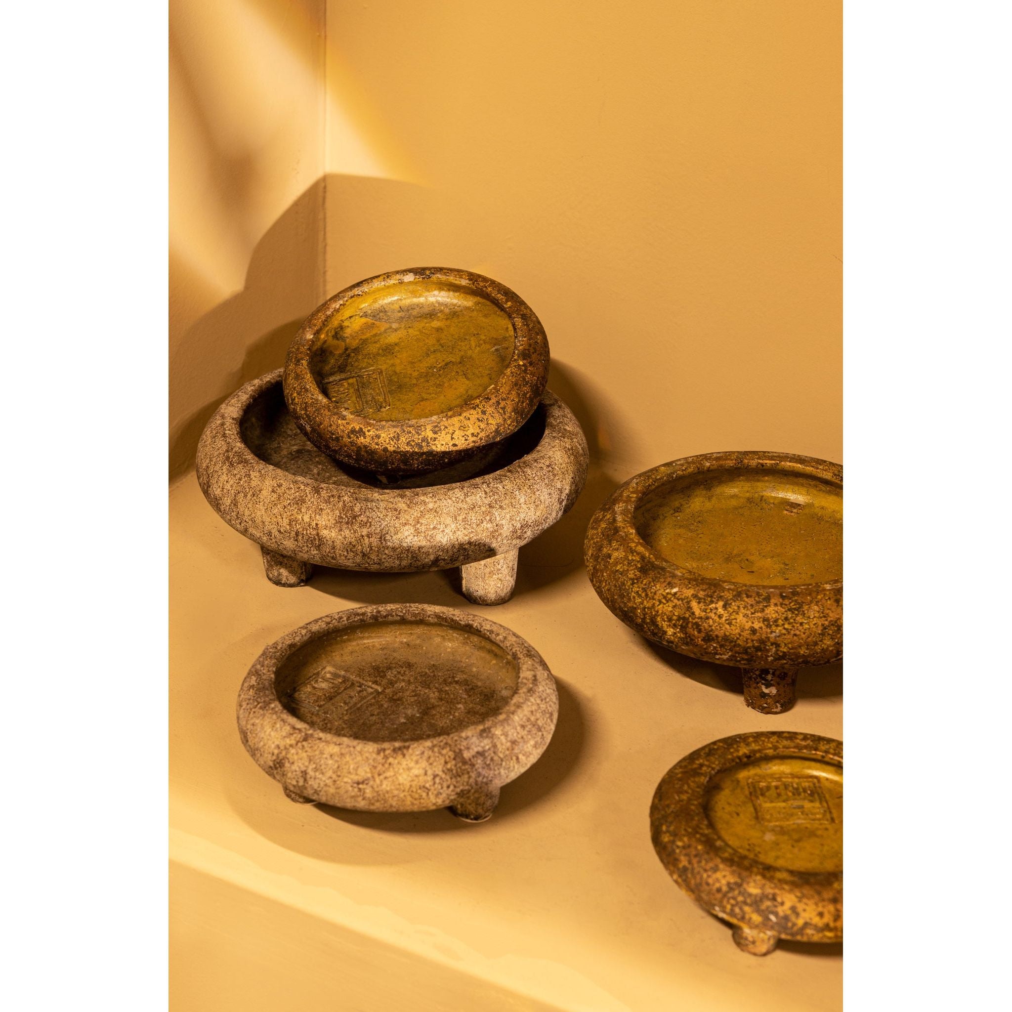 Dank ihrer Maße von 14.0 × 14.0 × 5.0 cm eignet sich die Schale ideal als dekoratives Element auf Tischen, Kommoden oder Regalen. Sie bietet vielseitige Einsatzmöglichkeiten – ob für kleine Alltagsgegenstände, zur Präsentation dekorativer Objekte oder als eigenständiges Designstück. Die Tarris Gold Schale ist ein echtes Highlight für jedes Zuhause und setzt elegante Akzente in jedem Raum.