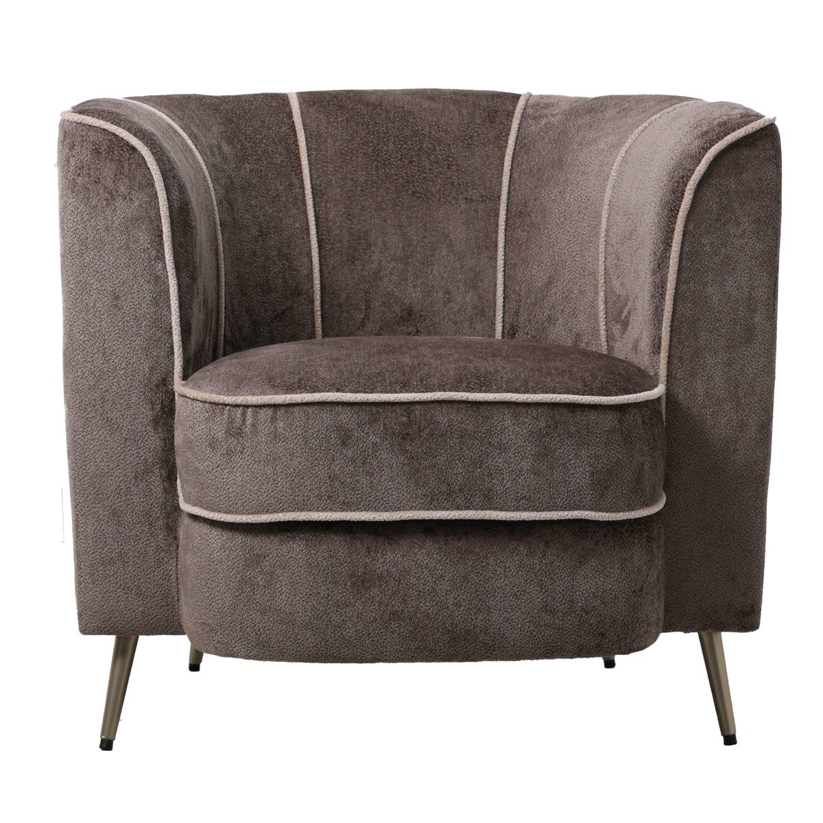 Der John Mocca Fauteuil im edlen Aphrodite-7-Stripe-Design verbindet modernen Komfort mit einer warmen, charaktervollen Optik. Der hochwertige Stoffbezug in einem tiefen Mocca-Ton sorgt für eine elegante, gemütliche Ausstrahlung, während das feine, dezente Streifenmuster dem Sessel zusätzliche Struktur und visuelle Tiefe verleiht. Durch seine harmonische Formgebung und die ausgewogenen Proportionen lässt sich der Fauteuil vielseitig in verschiedene Wohnstile integrieren – ob modern, klassisch oder gemütlich-natürlich.