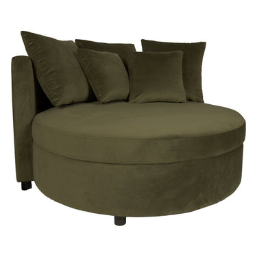 Der PTMD Fayen Velvet Green Fauteuil Half Round KD besticht durch elegantes Design und hohen Sitzkomfort. Der halbkreisförmige Sessel ist mit hochwertigem Velvet-Samt in edlem Grünton bezogen und bietet eine großzügige Sitzfläche, die zum Entspannen und Wohlfühlen einlädt. Mit den Maßen 121,0 x 121,0 x 68,0 cm passt er ideal in Wohnzimmer, Lounges oder stilvolle Leseecken und setzt einen modernen, luxuriösen Akzent in jedem Raum.