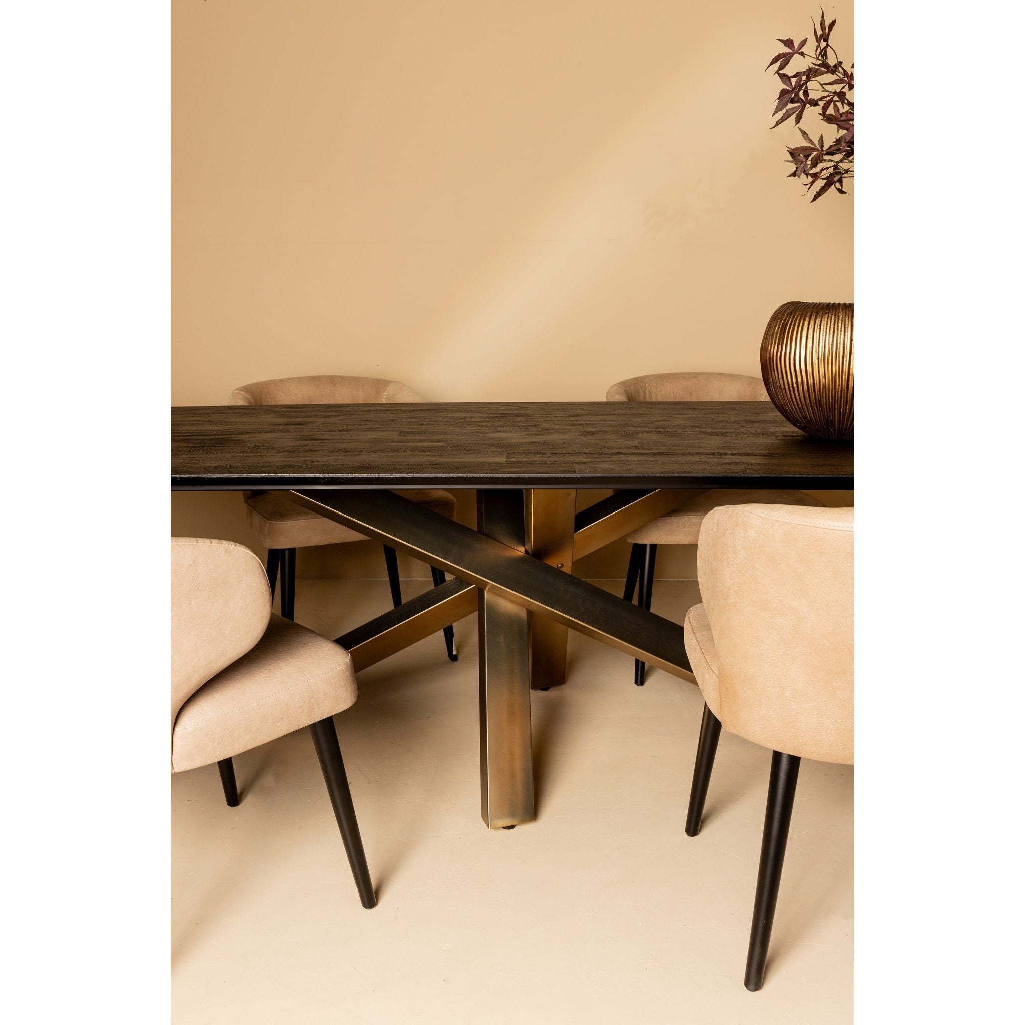 Das moderne Metallgestell in goldfarbener Ausführung setzt einen luxuriösen Akzent und bietet gleichzeitig eine stabile Basis. Die Kombination aus warmem Holz und glänzenden Goldtönen verleiht dem Tisch ein hochwertiges, zeitgemäßes Erscheinungsbild. Der Alore Braun Gold Esstisch eignet sich perfekt für große Familienrunden, gesellige Abende oder repräsentative Wohnbereiche und ist ein wahrer Blickfang, der Stil und Funktionalität eindrucksvoll vereint.