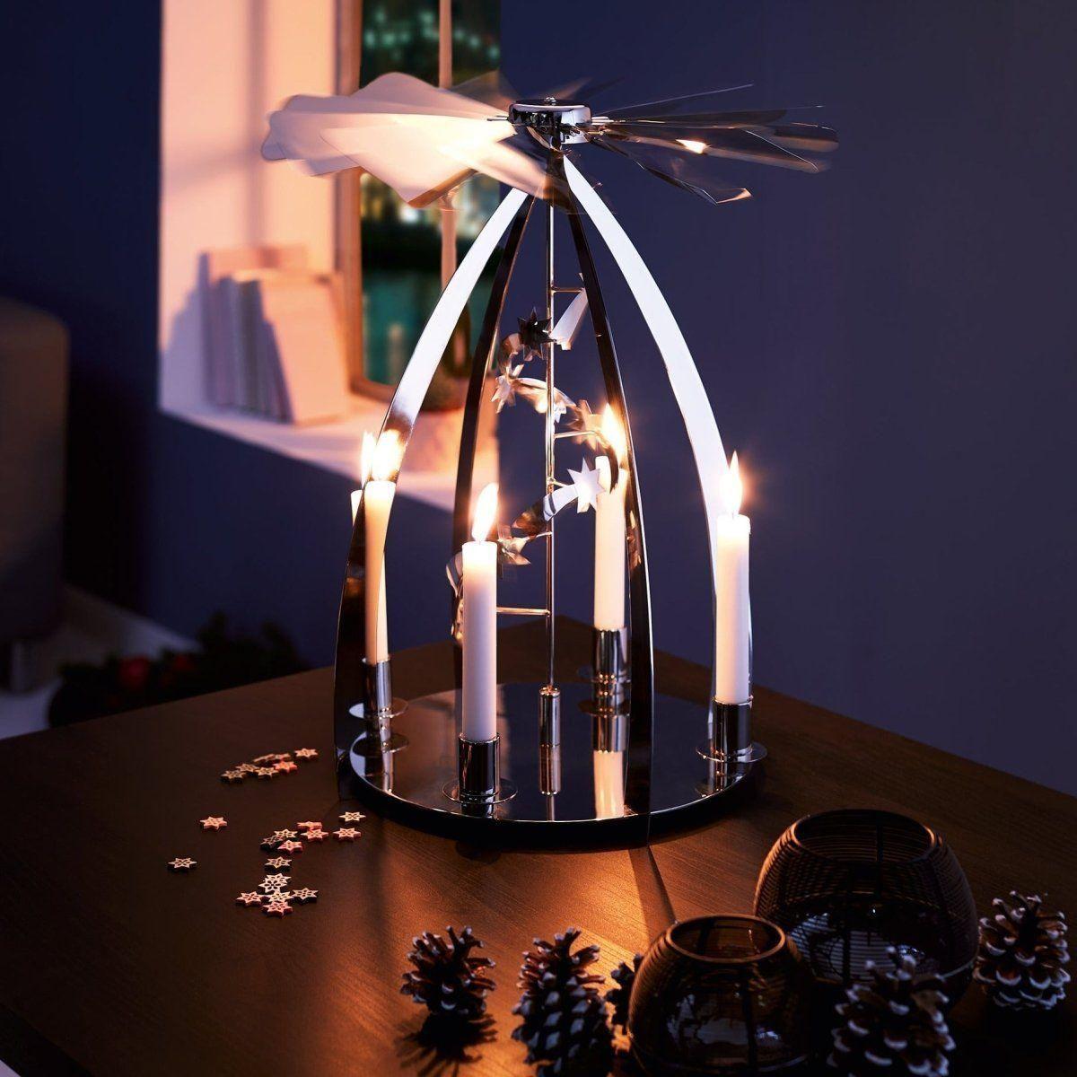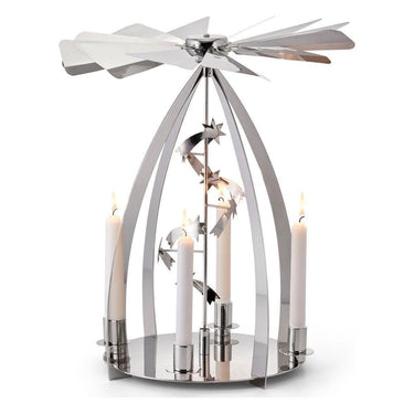 Weihnachtsdeko aus hochglanzpoliertem Edelstahl mit Messingdetails und kerzenbetriebener Rotation – Stille Nacht | Philippi