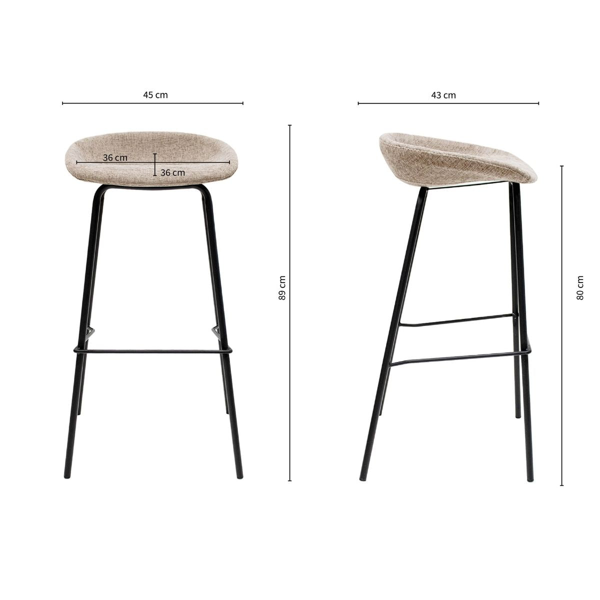 Barhocker Strukturstoff-Bezug, Komfortable Sitzfläche, Schwarzes Metallgestell, Modernes Design – Riga| Kick Collection
