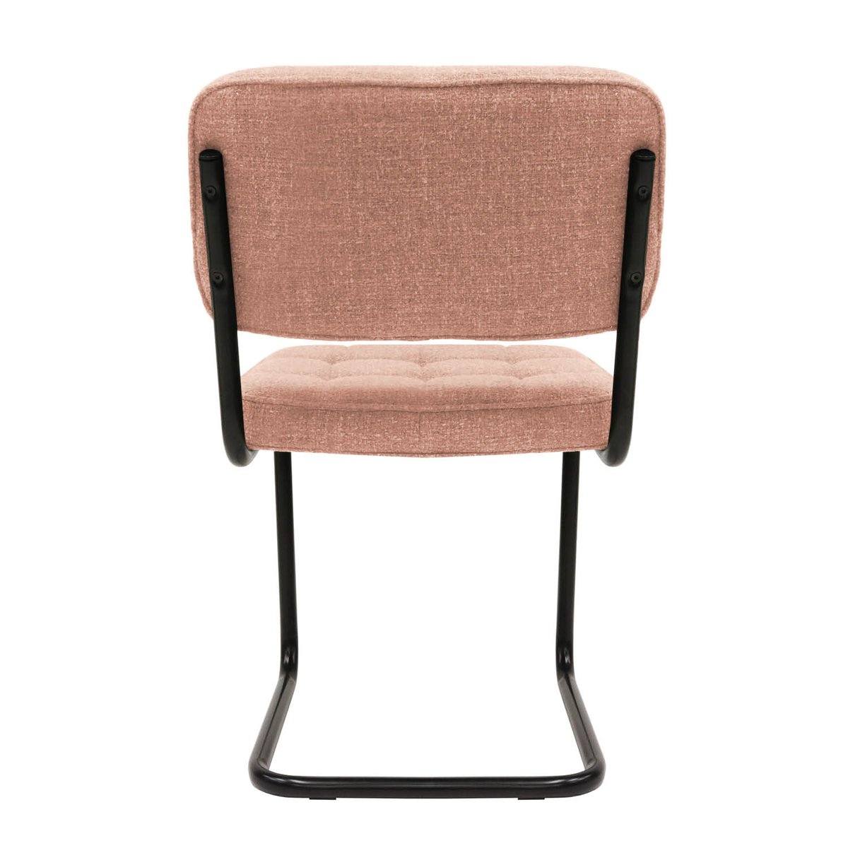 Der Kick Collection Buisframe-Stuhl Yves in Rosa vereint modernes Design mit hohem Sitzkomfort und ist eine elegante Ergänzung für jedes Interieur. Die Sitzfläche ist mit strukturiertem Baumwollstoff in zartem Rosa bezogen, was dem Stuhl eine zeitlose und stilvolle Ausstrahlung verleiht. Das robuste schwarze Metallgestell sorgt für Stabilität und verleiht dem Stuhl eine leichte, moderne Optik. Vertikale Steppnähte und großzügige Polsterung setzen besondere Akzente und erhöhen den Sitzkomfort zusätzlich.