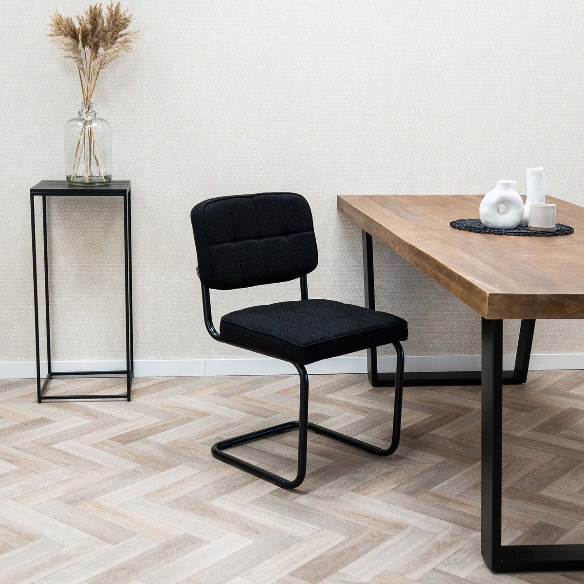 Esszimmerstuhl Schwarzer Baumwollbezug Schwarzes Schlitten-Gestell Gepolstert – Yves | Kick Collection