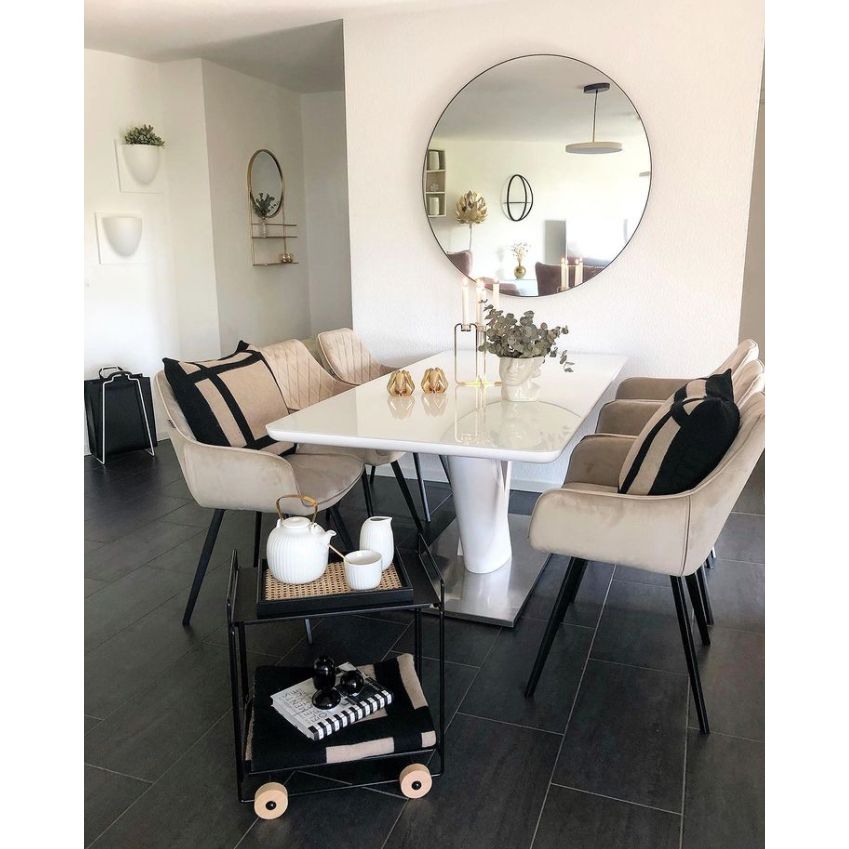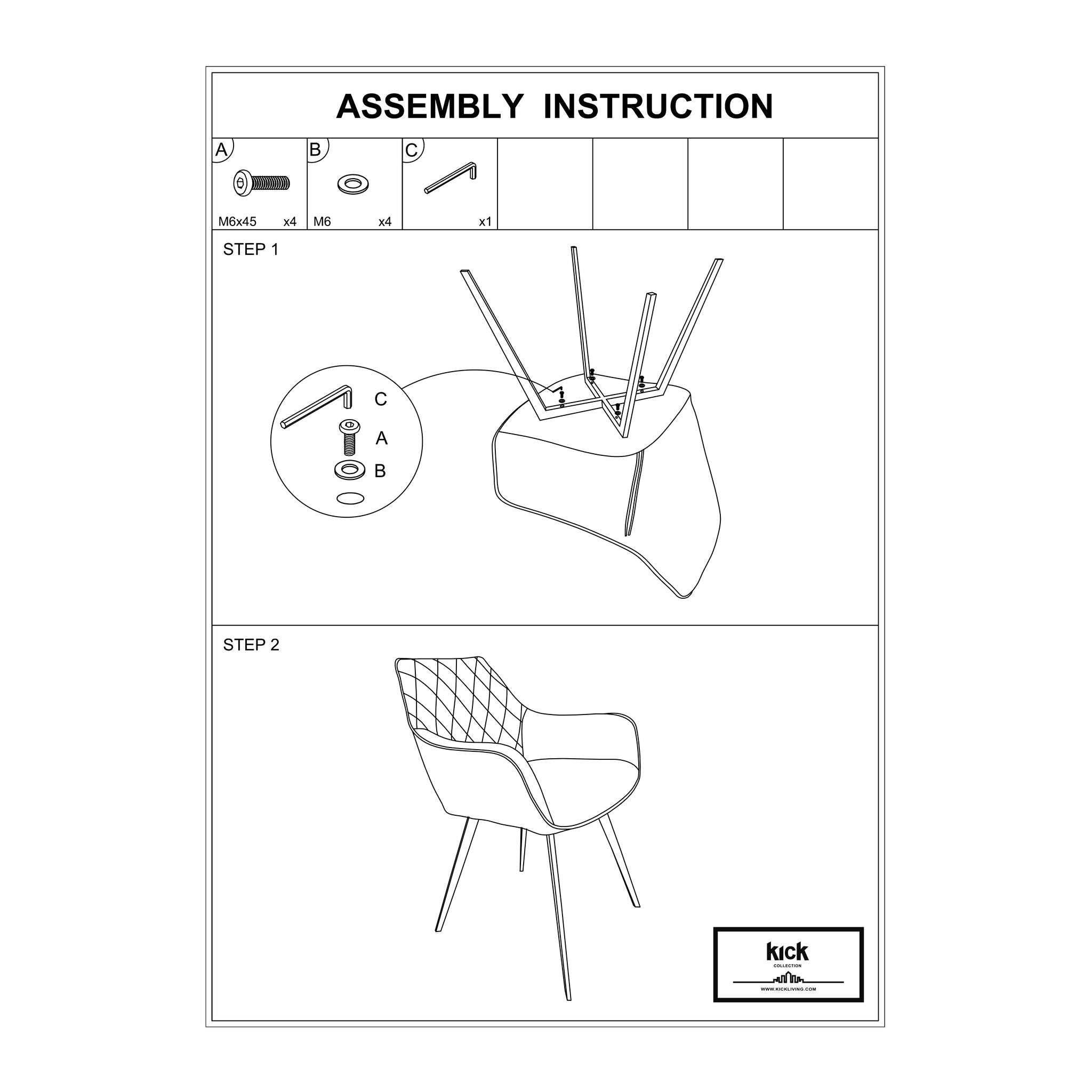 Esszimmerstuhl Kunstlederbezug, Elastische Sitz- & Rückenlehne, Schwarzes Metallgestell, Gepolstert – Karl | Kick Collection