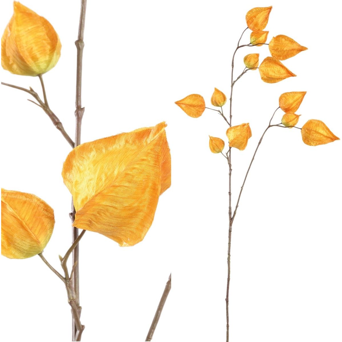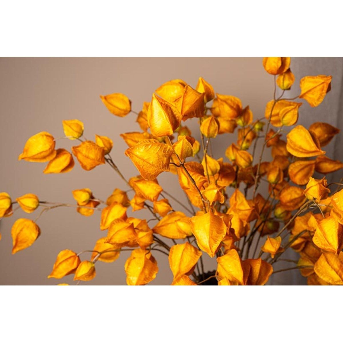 Der Cream Orange Physalis Spray von Twig Plant bringt natürliche Eleganz in jede Dekoration. Mit seinen detailreich gestalteten creme-orangenen Früchten und dem feinen Blattwerk eignet sich der Zweig ideal für Vasen, Gestecke oder florale Arrangements.