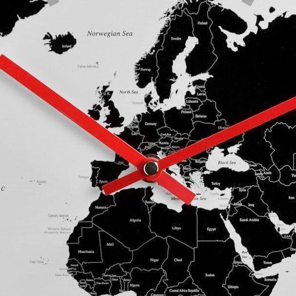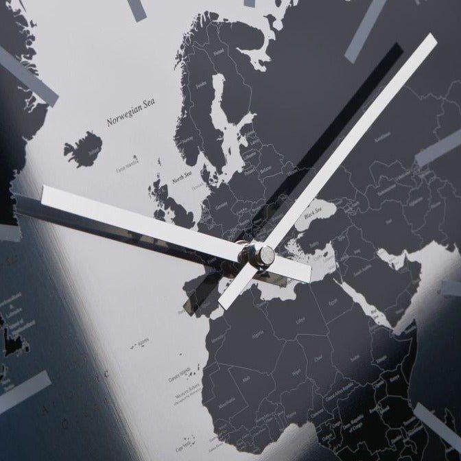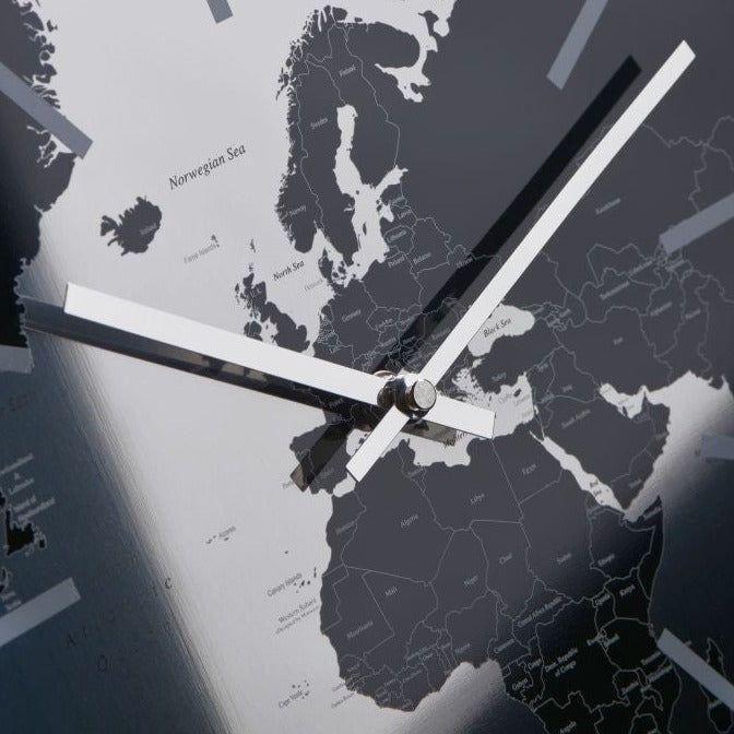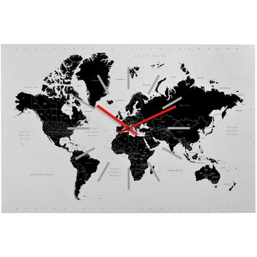 Diese außergewöhnliche Wanduhr mit integrierter Weltkarte verbindet dekorative Ästhetik mit funktionaler Eleganz. Das moderne Design macht sie zu einem stilvollen Blickfang an jeder Wand – ideal für Wohnräume, Büros oder Arbeitszimmer. Die flache Konstruktion verleiht der Uhr eine leichte, schwebende Optik, während die Weltkarte einen kosmopolitischen Charakter vermittelt und Reiselust sowie Weltoffenheit unterstreicht.