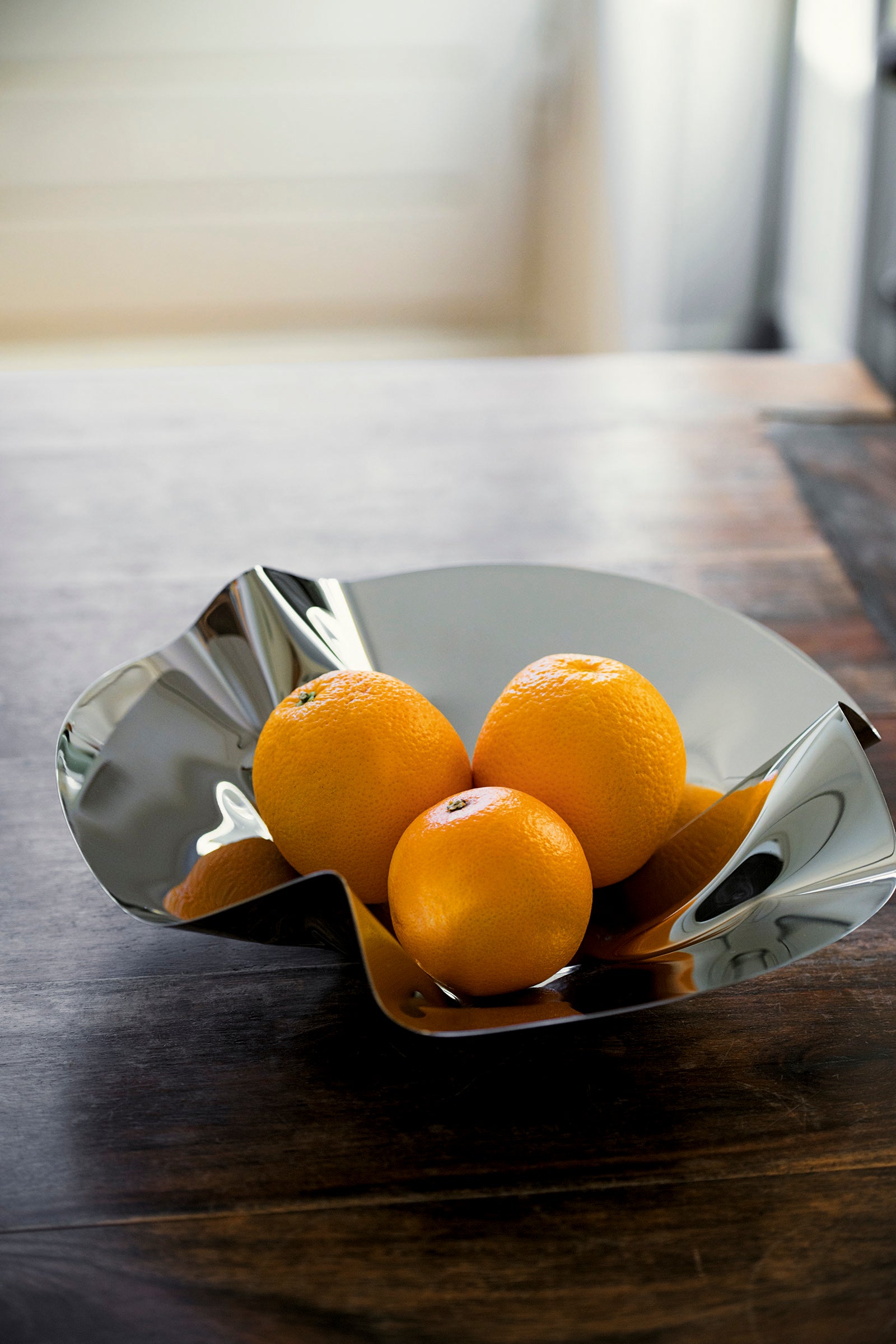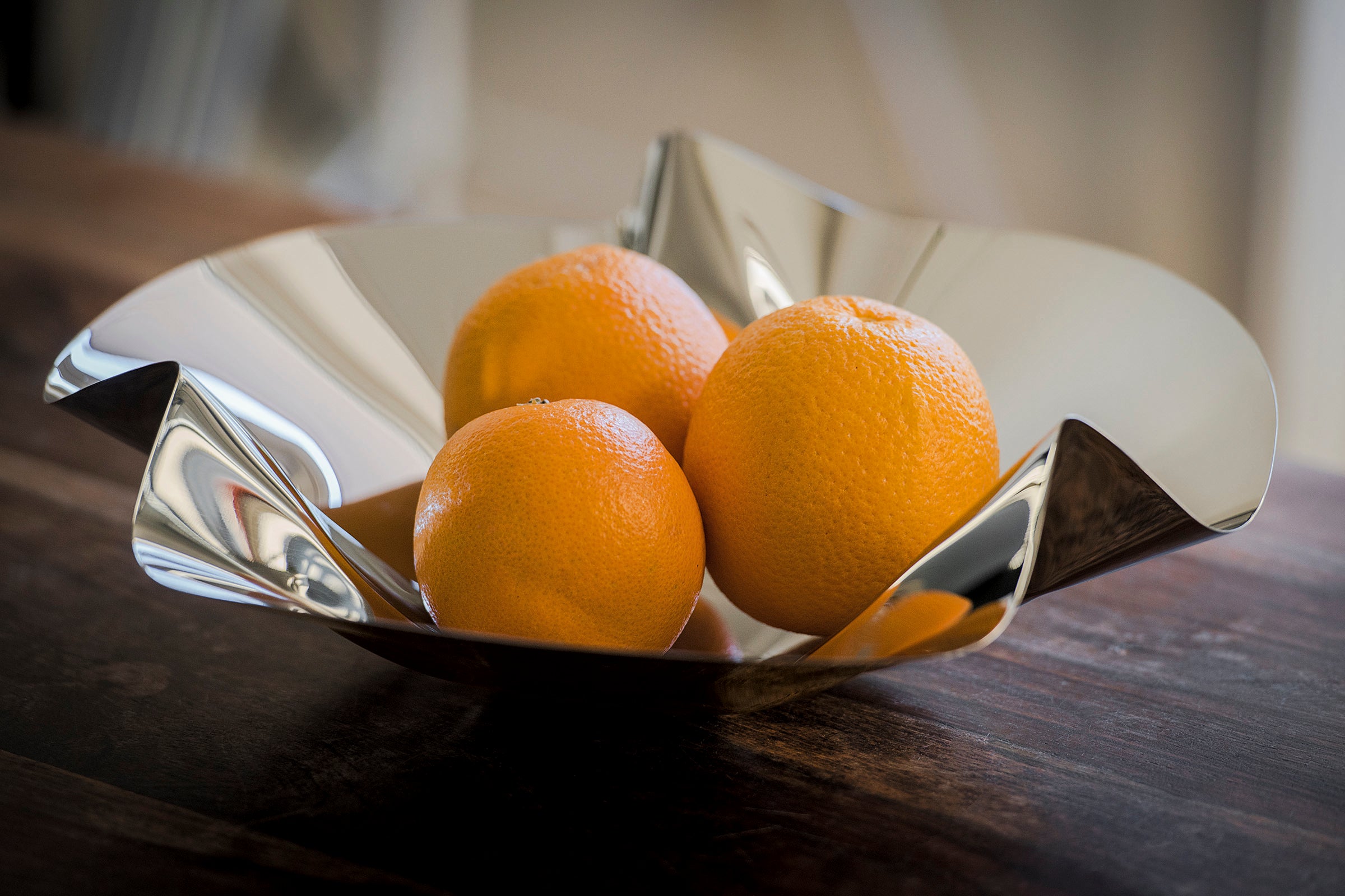 Mango, Kiwi, Litschi, Pitaya – eine ganze Welt voller Früchte findet in der MARGARETHE-Schale ihre perfekte Bühne. Schon ihre glänzende Silberoberfläche verströmt eine verführerische, unwiderstehliche Eleganz, während alles, was Sie hineinlegen, das Erlebnis mit einem natürlichen Farb- und Geschmackskontrast vollendet.