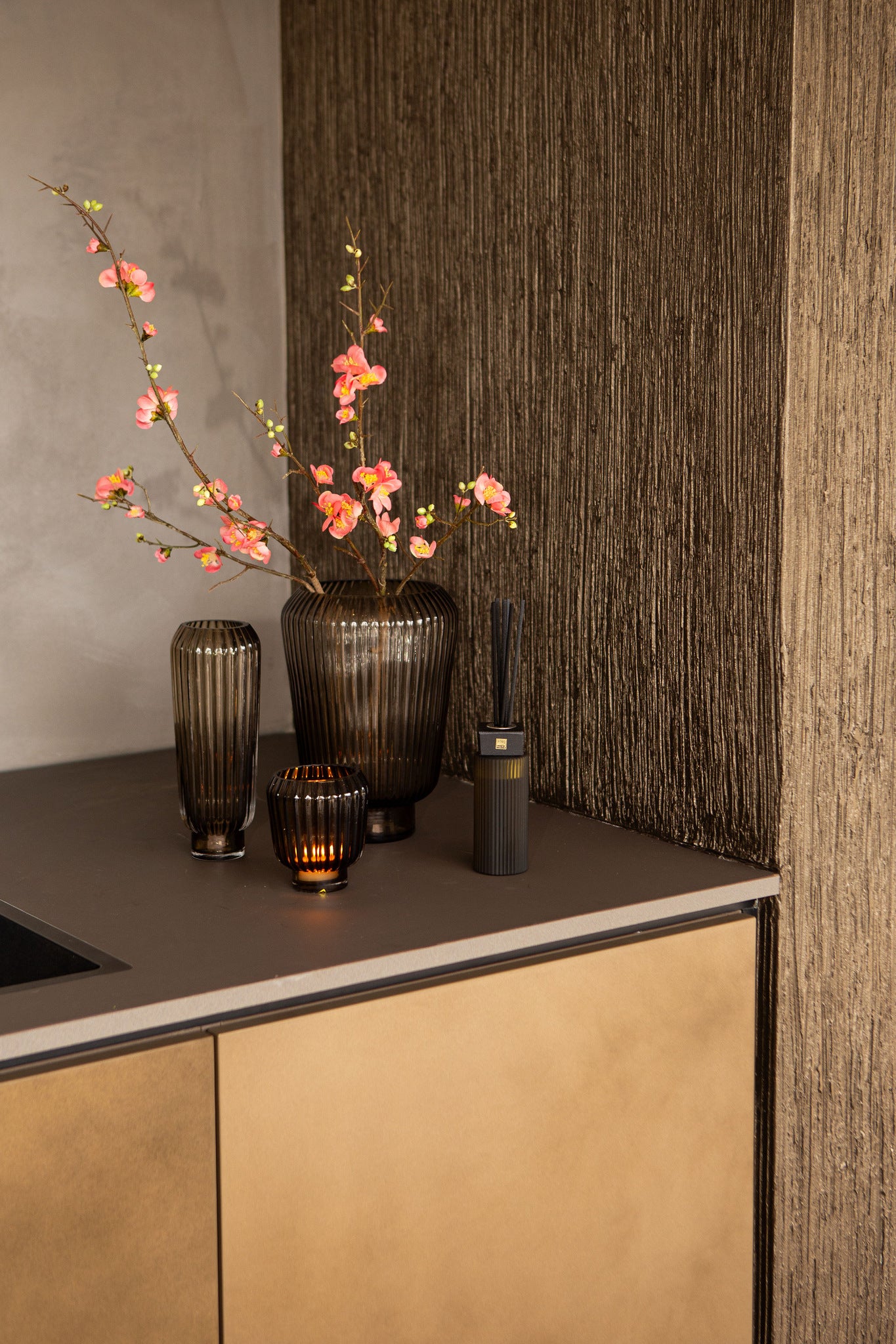 Die Joyca Bronze Vase von PTMD besticht durch ihre runde Form und die charakteristische gerippte Oberfläche, die ihr einen modernen, zugleich warmen Ausdruck verleiht. Der bronzebraune Farbton des massiven Glases sorgt für eine elegante Tiefe und bringt eine angenehme, gemütliche Stimmung in den Raum. Durch die handgefertigte Verarbeitung erhält jede Vase eine besondere Struktur und leichte Variationen, die ihren authentischen, hochwertigen Charakter unterstreichen.