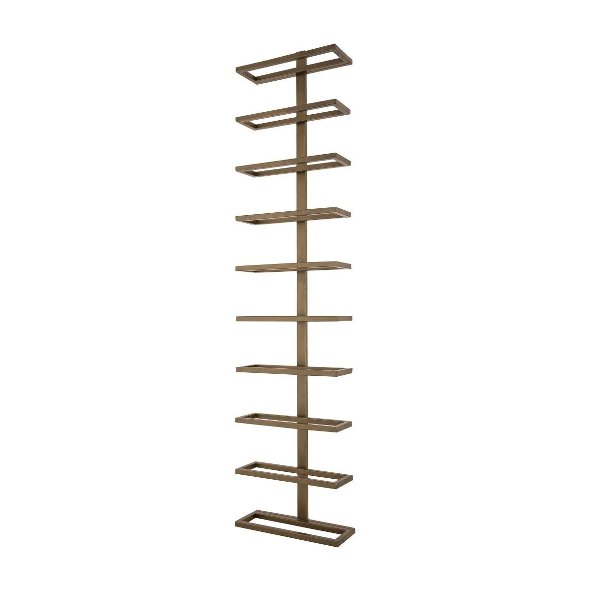 Das Icon Wand-Weinregal überzeugt durch sein elegantes Design und seine funktionale Struktur. Gefertigt aus hochwertigem Eisen in edler Messingoptik, präsentiert es Weinflaschen in einer platzsparenden, vertikalen Anordnung. Die handgefertigte Oberfläche verleiht jedem Stück eine individuelle Note und sorgt für einen stilvollen Akzent an der Wand.