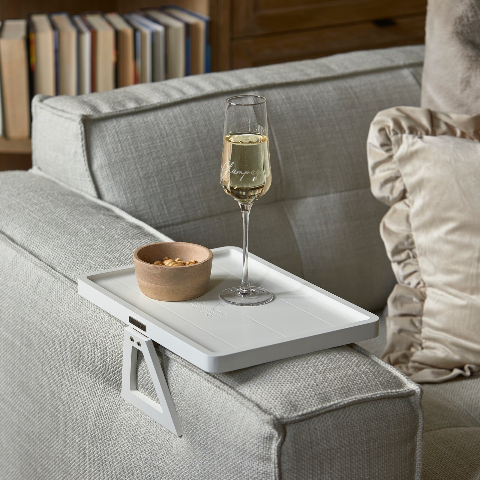 Schaffen Sie eine zusätzliche Tischplatte mit diesem stilvollen Tablett Monogram Plateau De Fauteuil. Das perfekte Accessoire, um Ihren Sessel oder Ihr Sofa zu ergänzen. Mit einem zeitlosen, in der Mitte eingravierten Monogramm ist dieser Artikel nicht nur praktisch, sondern auch hübsch anzusehen! Eine trendige Ergänzung für jeden Raum.