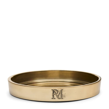 Schaffe eine Atmosphäre von Luxus und Wärme mit dem RM Maxime Kerzenständer. Dieses goldfarbene Tablett mit dem kultigen RM-Monogramm ist nicht nur eine schöne Unterlage für deine Kerzen, sondern bringt auch eine subtile Eleganz in dein Interieur. Perfekt, um deinem Wohnzimmer oder deinem Esstisch einen gemütlichen und raffinierten Touch zu verleihen.