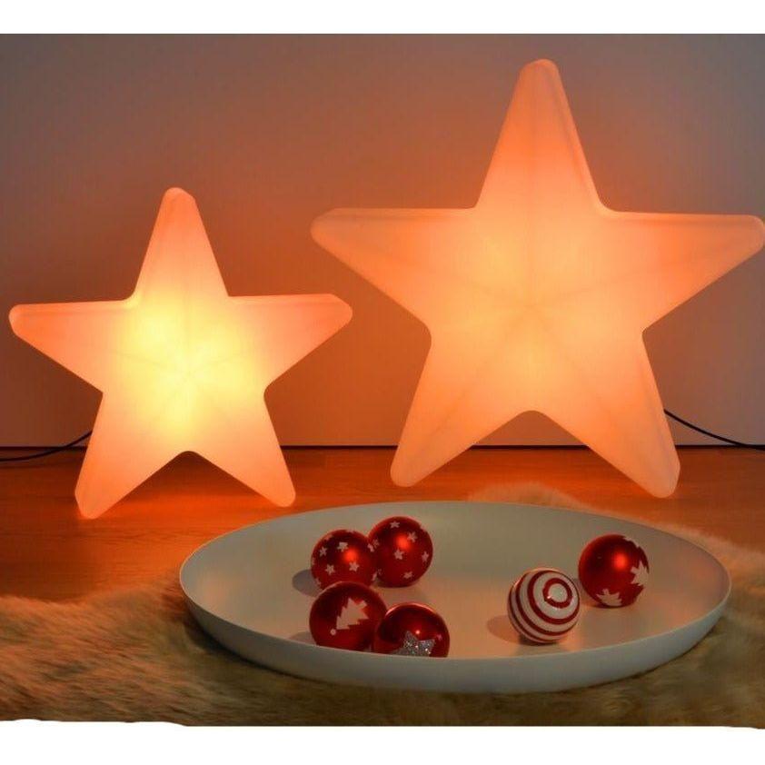 Die Wandaufhängung ist im Lieferumfang enthalten, ebenso wie die Fernbedienung, das Leuchtmittel und auch ein Erdspieß. Dieser lässt den Stern auch in Beeten und auf dem Rasen sicher stehen. Die LED – Einheit im Stern ist entweder mit einer wieder aufladbaren Batterie oder mit Kabel betrieben. Die Beleuchtungseinheit wird mit einer Fernbedienung gesteuert, mit dieser können alle Farben inklusive Weiß angesteuert werden. Der LED Weihnachtsstern ist in 2 verschiedenen Gehäuse – Größen erhältlich. Beide Sterne in Kombination setzen wunderschöne Akzente und erhellen die Weihnachtszeit mit ihrem Licht.