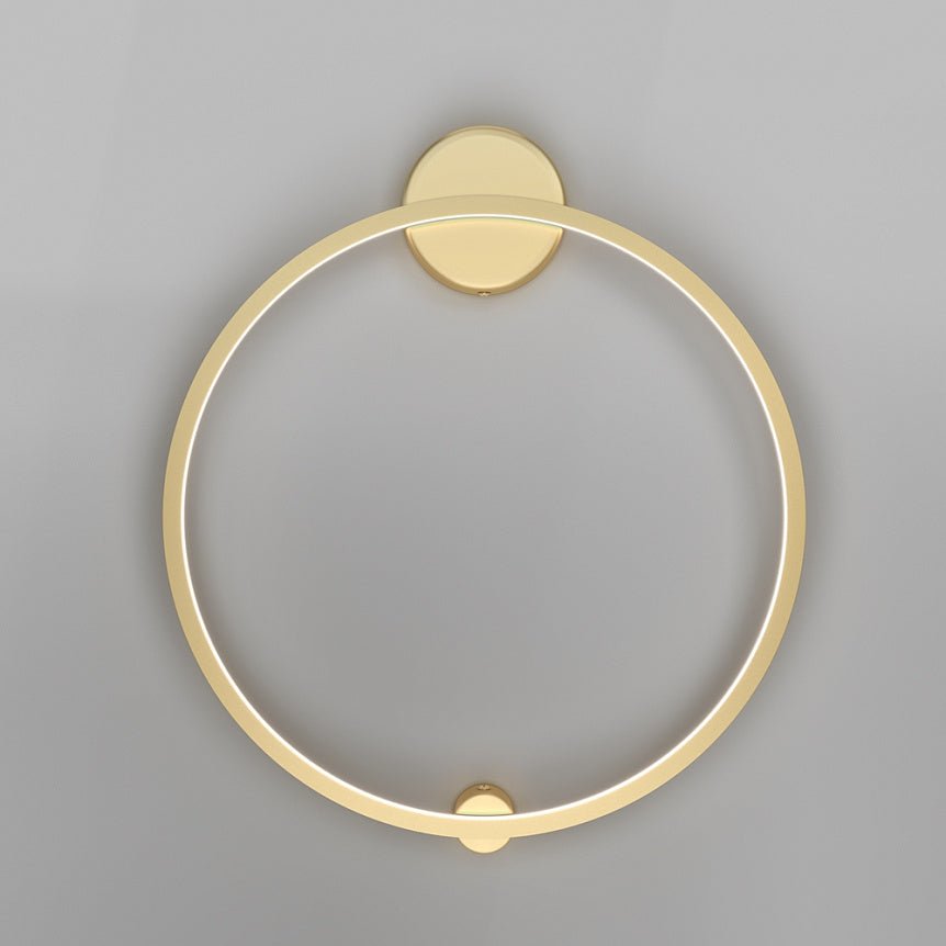 Die Maytoni MOD005WL‑L22BSK1 besticht durch einen eleganten Ring in gebürstetem Messing und eine schwarze Wandhalterung, die zeitloses, geometrisches Design verkörpert.
