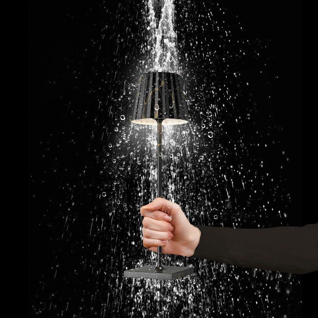 TROLL 2.0 - the outdoor table lamp with the unmistakable pleated shade. Made of aluminum and coated in various colors and patterns, the TROLL 2.0 can be used indoors and outdoors thanks to its IP54 classification. The powerful batteries offer up to 24 hours of wireless light. Using the touch sensor on the top of the light, the light can be dimmed continuously and you can choose between two warm white light colors. The TROLL 2.0 can be recharged in no time using the included charging station.