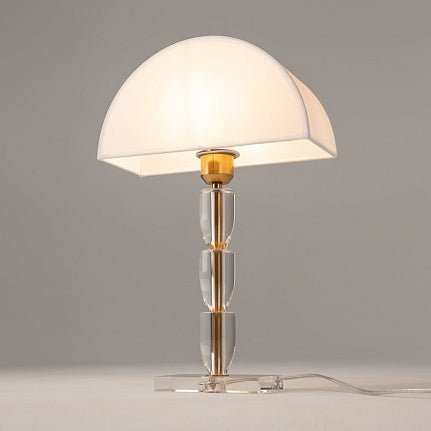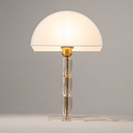 Tischleuchte Messingfarbige Metallstruktur Weißer Baumwollschirm & Transparente Acryl-Akzente – Prima | Maytoni