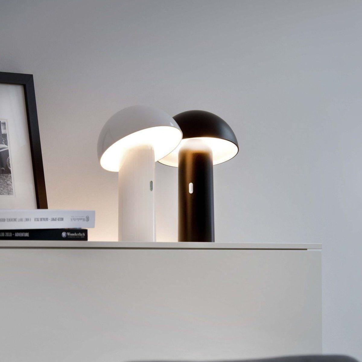 Battery operated, adjustable and dimmable. With a little imagination it looks like a mushroom, but it is a state-of-the-art LED light: “Svamp”. The triple-dimmable eye-catcher for tables and sideboards is made of high-quality plastic with a fine shine and is available in white, an elegant gray and black. Practical: The shade can be adjusted as needed so that you always have the right light. Another special feature: “Svamp” does not need a socket! This is a battery-powered light with a runtime of approximately six hours at the highest setting.