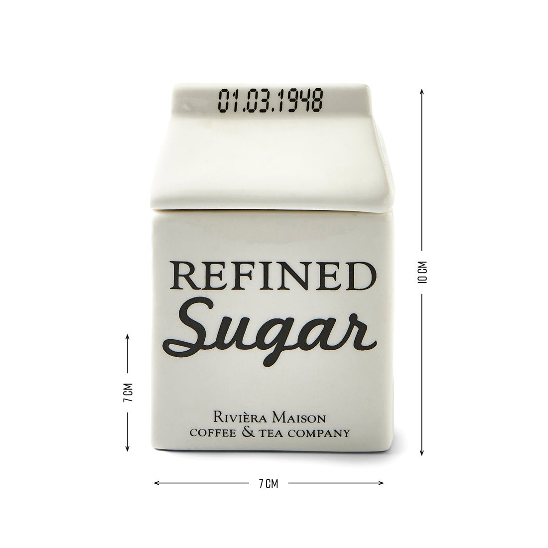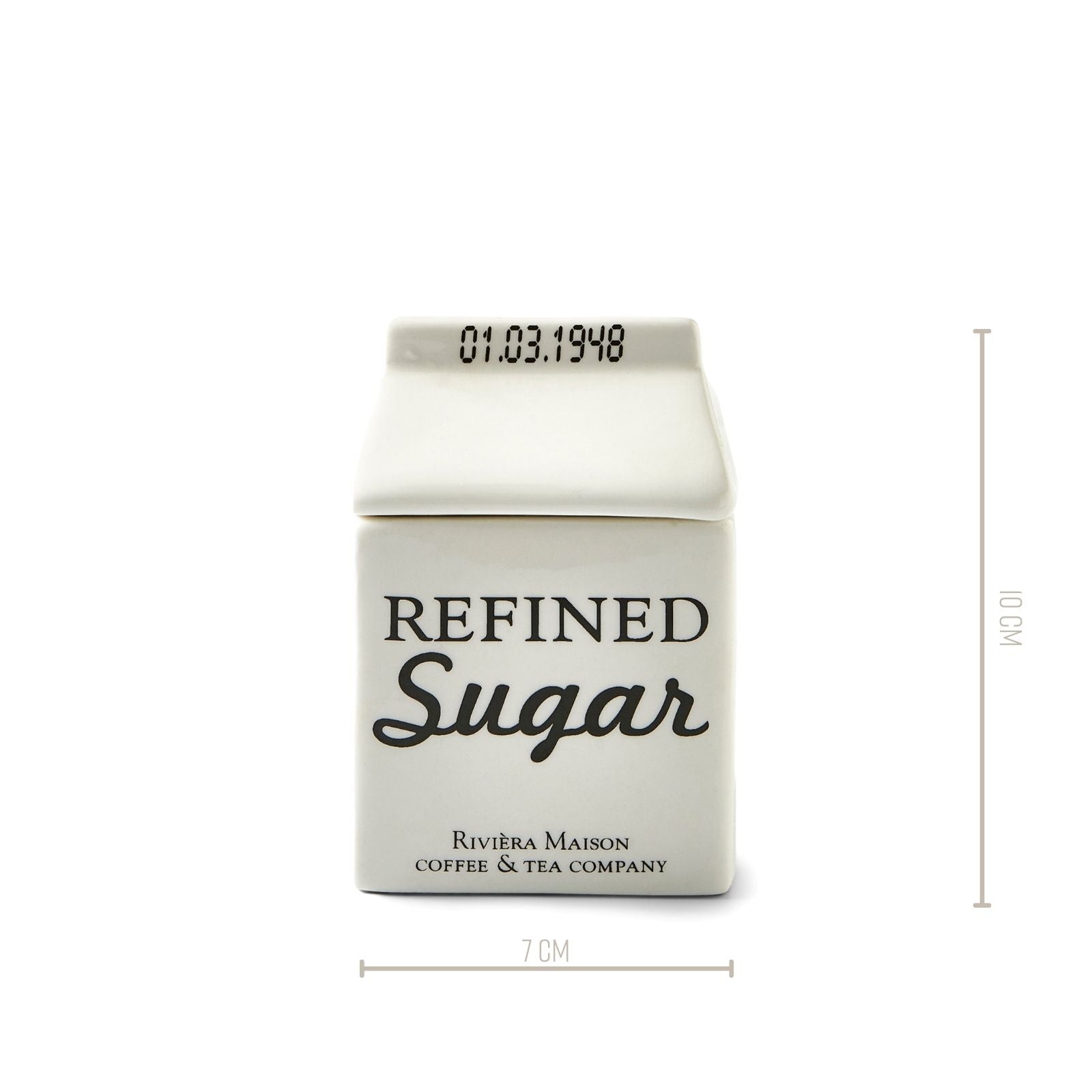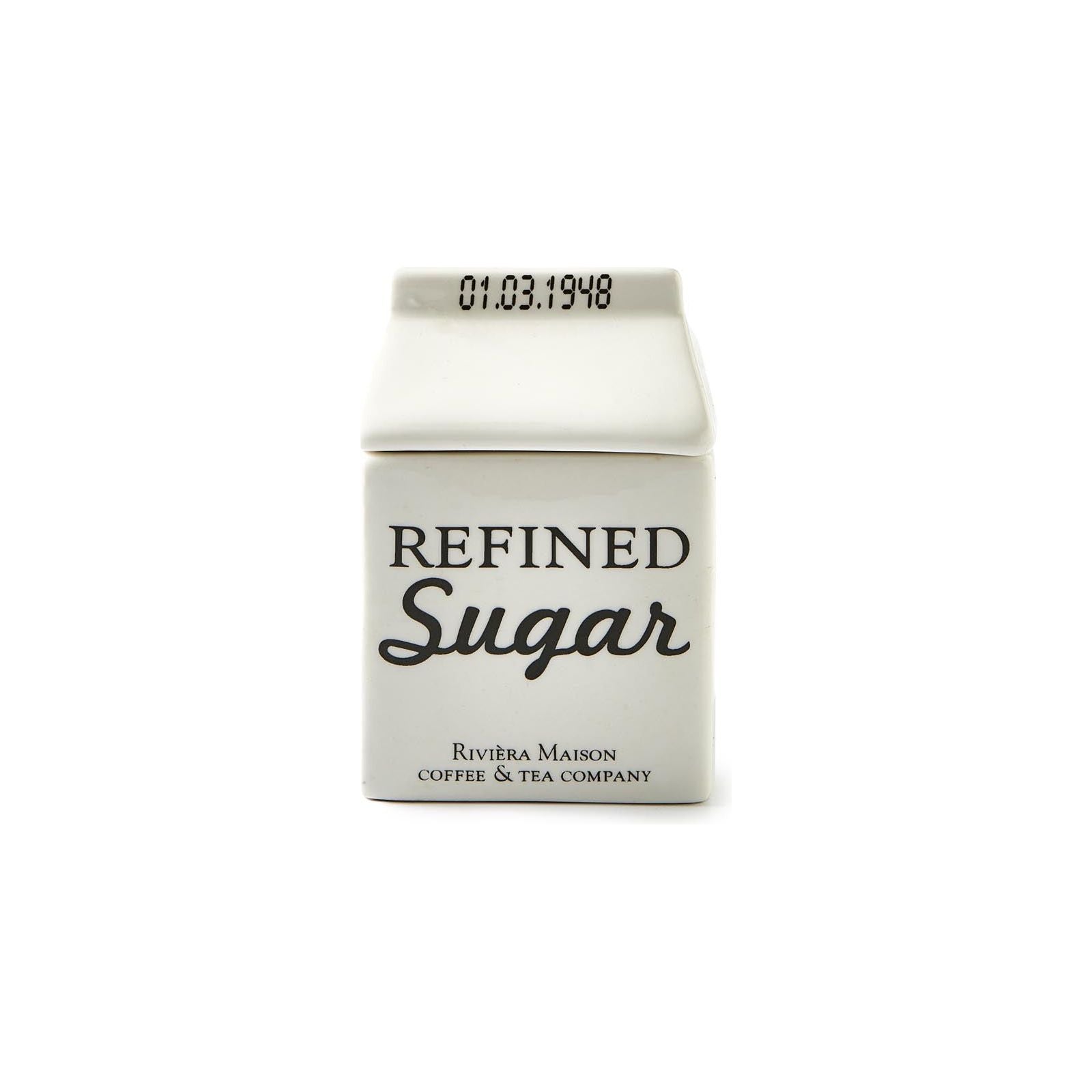 Zuckerdose Porzellan mit Text, Weiß, mit Deckel – Carton Jar Zucker | Rivièra Maison