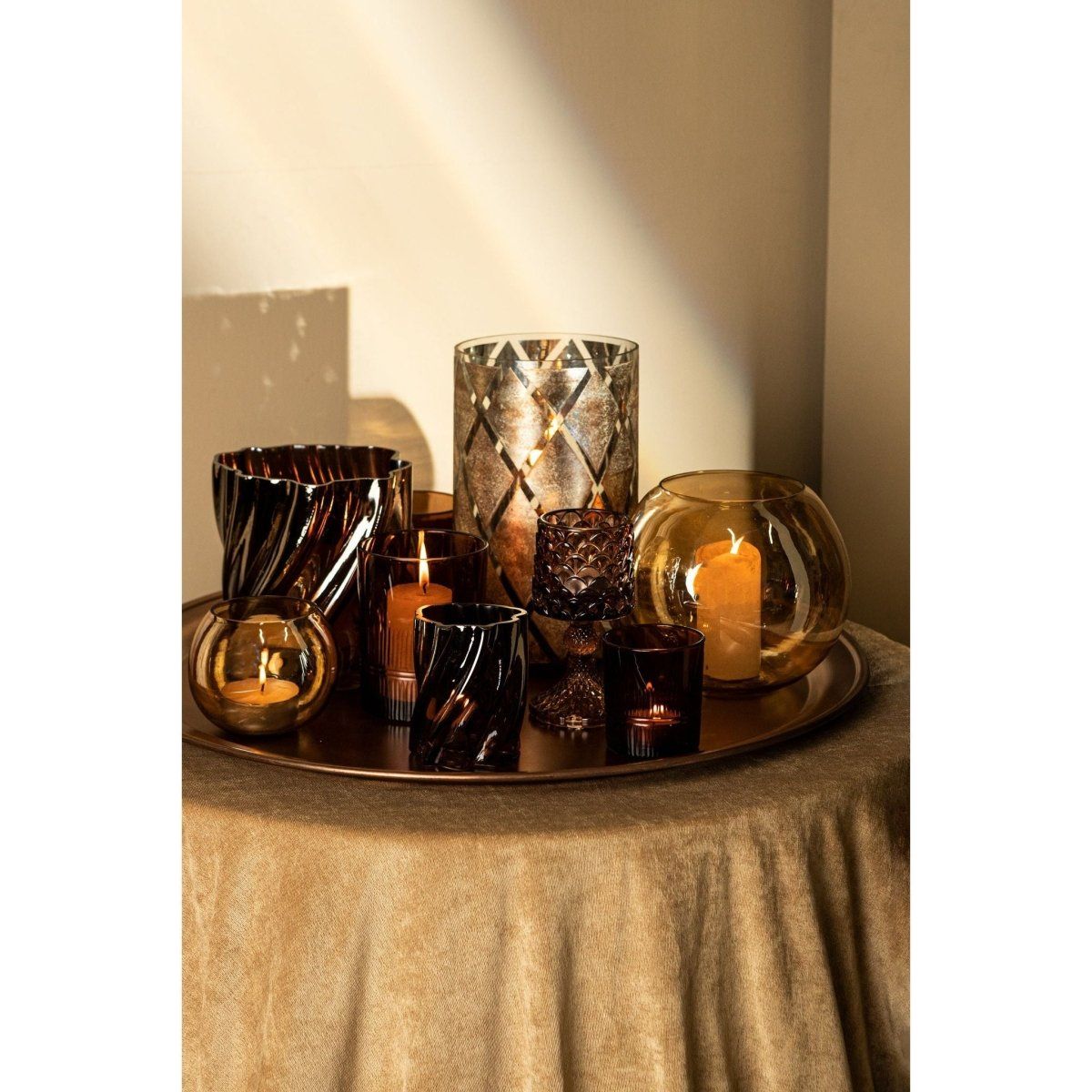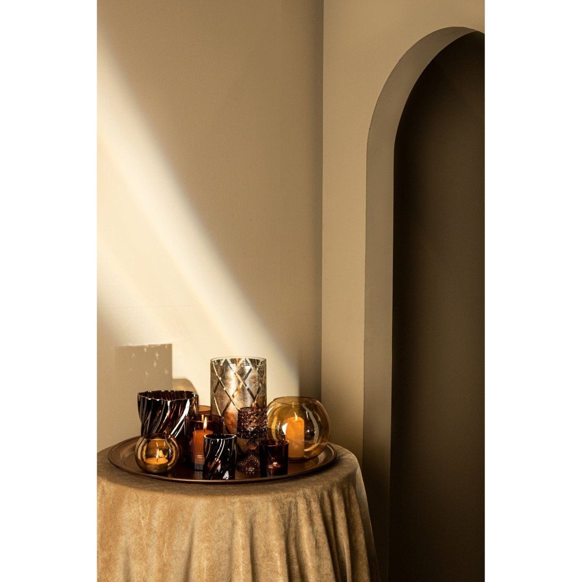 Mit seiner glänzenden Glasveredelung reflektiert das Windlicht das Kerzenlicht auf sanfte und zugleich eindrucksvolle Weise, was für eine stimmungsvolle Lichtwirkung sorgt. Als größeres Modell der LENORE-Serie lässt es sich ideal mit den kleineren Ausführungen kombinieren, um ein ausdrucksstarkes und harmonisches Deko-Arrangement zu gestalten. Das Lenore-Stormlight ist perfekt für alle, die ihre Wohnräume mit einem Hauch von zeitlosem Glanz und warmer Eleganz bereichern möchten.