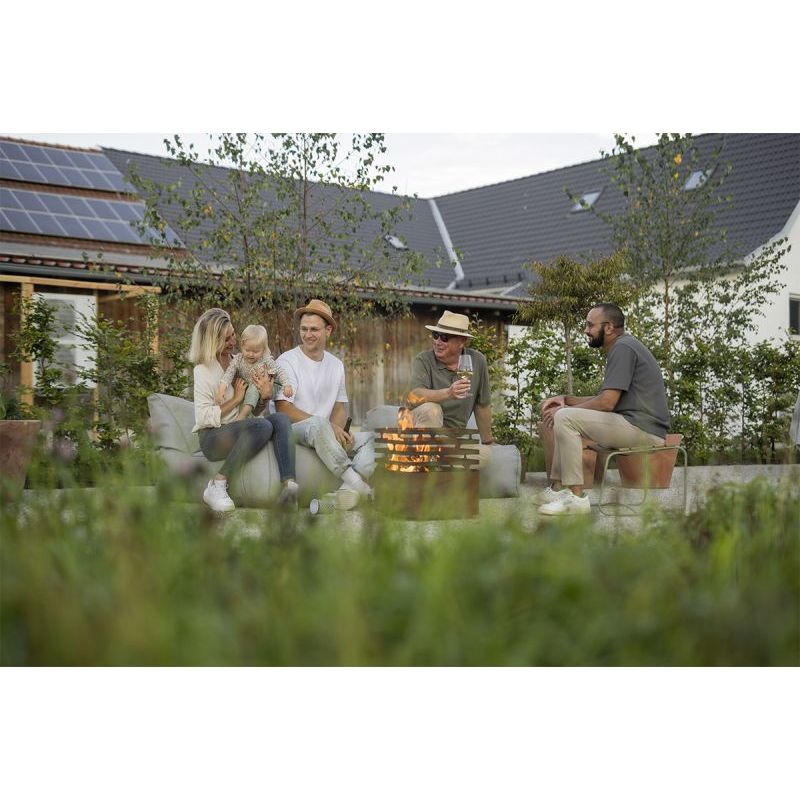 The CUBE fire bowl made of Corten steel is an expressive example of modern outdoor design, where raw material meets thoughtful functionality. Its distinctive, geometric shape and the surface that develops over time give it a unique appeal, transforming any outdoor area into a place full of atmosphere and character. The vibrant patina develops with every use, making each piece a distinctive individual item that reflects the connection of fire, material, and environment in a special way.