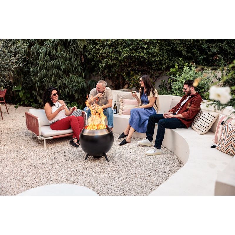 The MOON 55 fire bowl with a low stand offers you a particularly intense and low-to-the-ground fire experience, where modern design meets innovative technology. Its sculptural, spherical design and minimalist appearance create a calm yet impressive focal point that harmoniously blends into any outdoor area. The fascinating flame pattern, generated by advanced wood gasification technology, rises elegantly, transforming every moment into a stylish atmosphere full of warmth and depth.