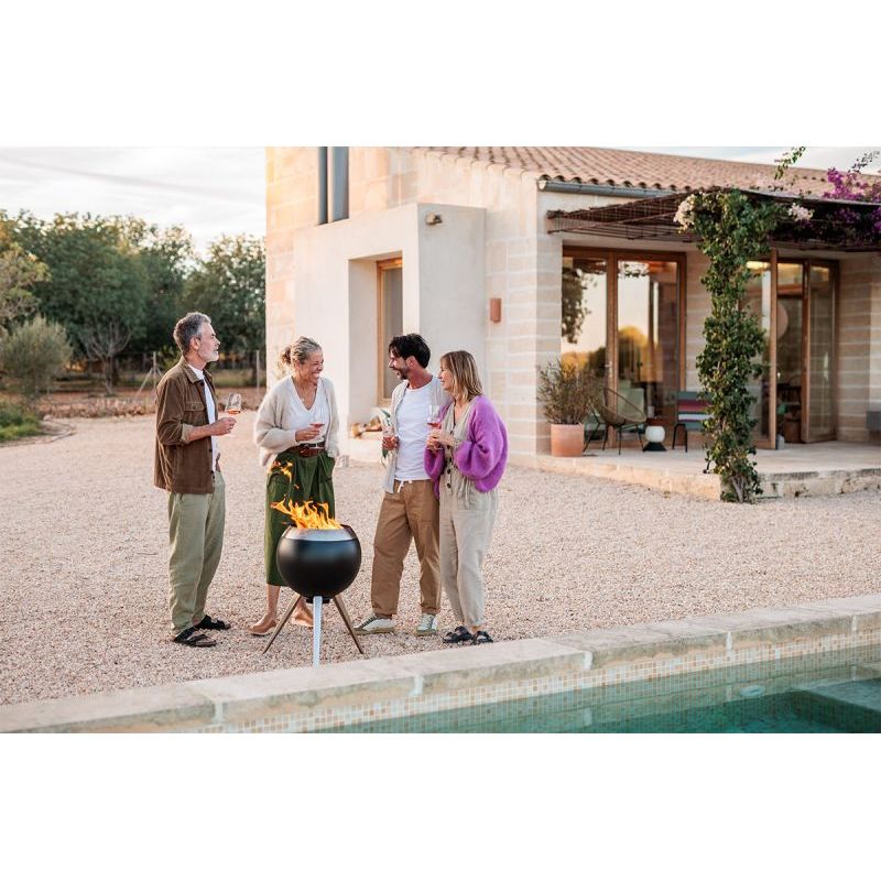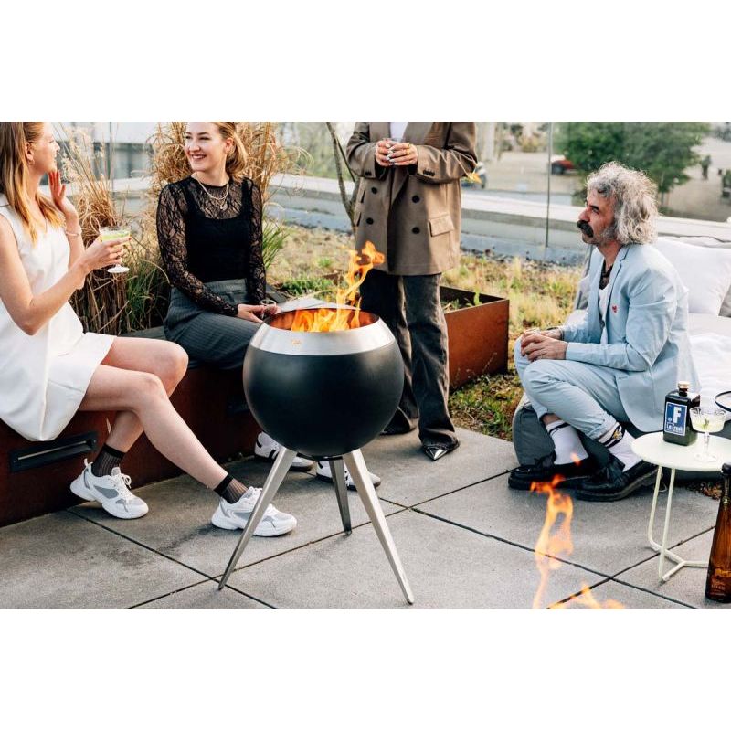 The MOON 45 fire pit with a high base combines elegant design with innovative fire technology, creating an impressive outdoor experience. Its harmonious, spherical shape and elevated construction give it a special lightness and presence that transforms any outdoor space into a stylish place for gathering and relaxation. The fascinating flame pattern, shaped by the advanced combustion system, ensures a lively atmosphere and makes every moment by the fire something special.