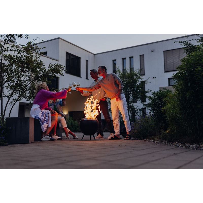 The MOON 45 fire pit with a low base offers you a particularly close and intense fire experience, bringing warmth and atmosphere directly into your surroundings. Its elegant, spherical design and minimalist appearance blend effortlessly into any outdoor space while creating an impressive focal point. The vibrant flame pattern transforms every gathering into a sensual experience where fire, design, and atmosphere come together in a harmonious and stylish way.