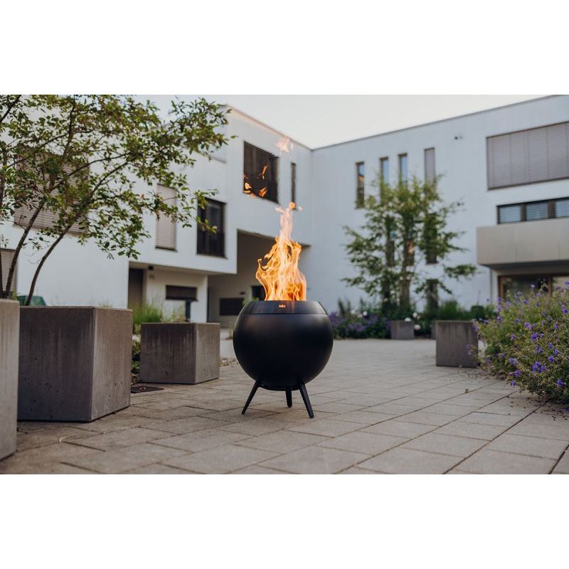 The MOON 45 Fire Set Flex in Black is an expressive element of modern outdoor living, where deep black aesthetics meet innovative fire technology. Its sculptural, spherical design in a black finish gives it an impressive presence, transforming any outdoor area into a stylish space. The fascinating flame pattern, generated by advanced wood gasification technology, rises clearly and vividly, creating an atmosphere full of warmth, elegance, and contemporary design.