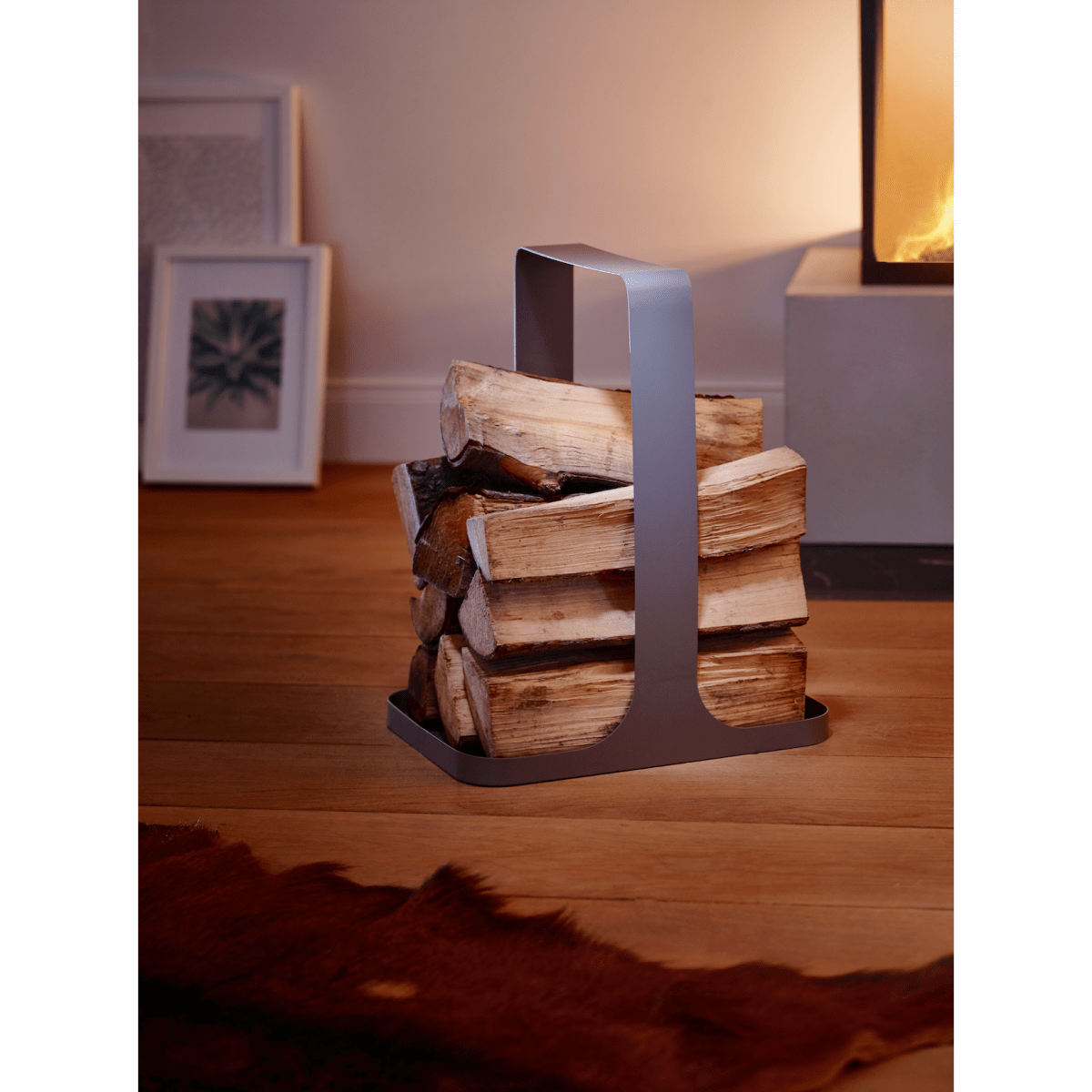 Eigentlich viel zu schade um sie zu verbrennen, denn in dieser stylischen Kombination sind die Holzscheite selten ästhetisch aufgehoben. Der pulverbeschichtete, kalte Stahl bildet einen angenehmen Kontrast zum urigsten aller Brennstoffe. Wer dennoch nicht auf romantische Abende am wärmenden Feuer verzichten möchte, darf den Kaminholzbutler LOG selbstverständlich auch für den Transport einsetzen. Neben dem praktischen Tragegriff ist LOG am Boden mit einer umlaufenden, erhöhten Kante ausgestattet, in dem Rinde und Holzreste aufgefangen werden.