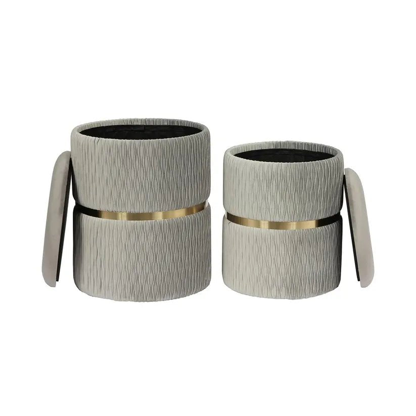 Der Kayoom Hocker Zora 425 im 2er-Set vereint Funktionalität mit stilvollem Design. Jeder Hocker verfügt über einen hochwertigen, samtigen Stoffbezug aus Polyester, der in verschiedenen eleganten Farbtönen erhältlich ist. Der goldene Akzent aus Edelstahl verleiht den Hockern einen edlen Touch. Dank ihrer kompakten Größe sind sie vielseitig einsetzbar und passen sich verschiedenen Raumkonzepten an.