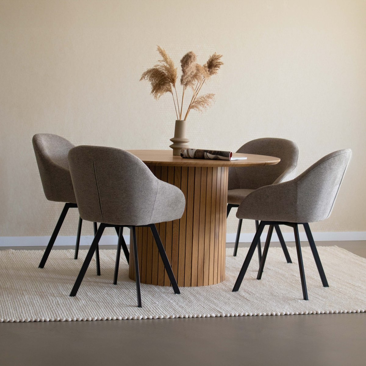 Olof wurde für maximalen Komfort im Alltag entworfen und schenkt dir eine stützende Sitzfläche sowie eine sanfte Drehfunktion, die Flexibilität und Bequemlichkeit vereint. Das schlanke Metallgestell sorgt für eine moderne Note und gleichzeitig für langlebige Stabilität. Ob am Esstisch, im Home Office oder als stilvoller Akzentstuhl – Olof bringt Wärme, Vielseitigkeit und raffinierte Eleganz in dein Zuhause.