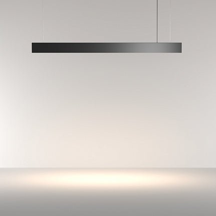 Die Maytoni P051PL-36W2.7-6K-B Pendelleuchte aus der BASIS-Serie kombiniert modernes, minimalistisches Design mit innovativer LED-Technologie. Der rechteckige Aluminiumkörper in mattem Schwarz ist 112,5 cm lang, 3,3 cm breit und höhenverstellbar von 9 cm bis 209,7 cm, sodass die Leuchte flexibel an unterschiedliche Raumhöhen angepasst werden kann. Das integrierte LED-Modul liefert 36 W Leistung bei 2310 Lumen und bietet eine einstellbare Farbtemperatur von 2700 K bis 6000 K, sodass das Licht je nach Bedarf von warmweiß bis tageslichtweiß variiert werden kann.