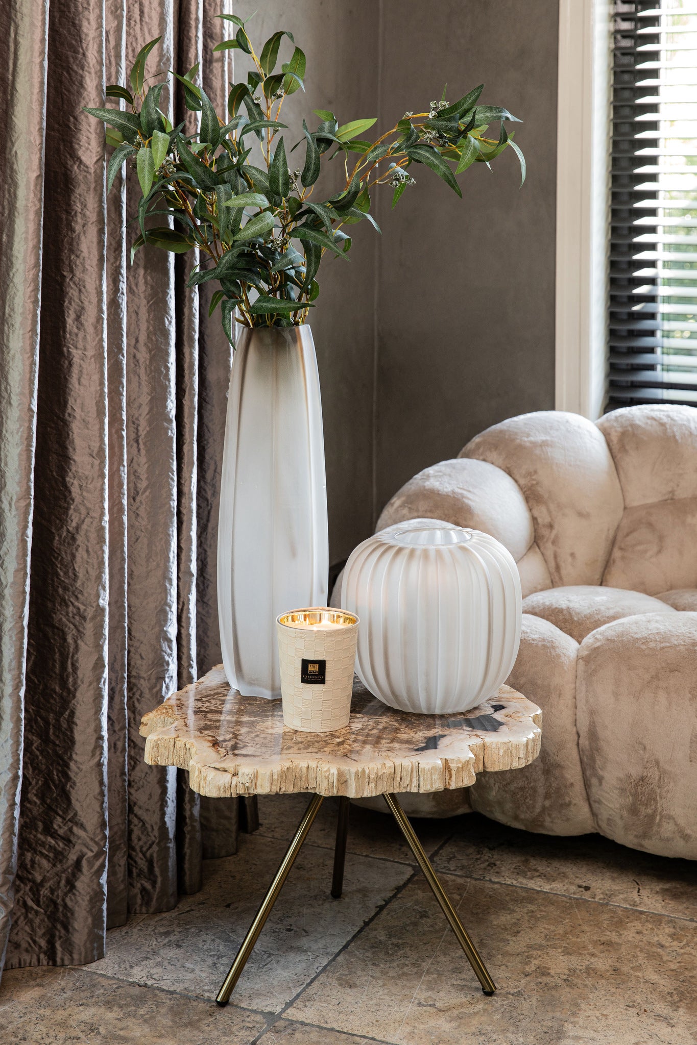 Mit seiner ausdrucksstarken Materialkombination wird der New Khine Couchtisch schnell zum Mittelpunkt eines Wohnraums. Ob als Einzelstück oder als Teil des dreiteiligen Sets der Kollektion: Er verleiht jedem Interieur eine exklusive, naturverbundene Ästhetik. Aufgrund seiner besonderen Oberfläche sollte der Tisch regelmäßig mit einem weichen, trockenen Tuch gepflegt werden. Ein einzigartiges Möbelstück für anspruchsvolle Designliebhaber, die Wert auf hochwertige Naturmaterialien und zeitlose Eleganz legen.