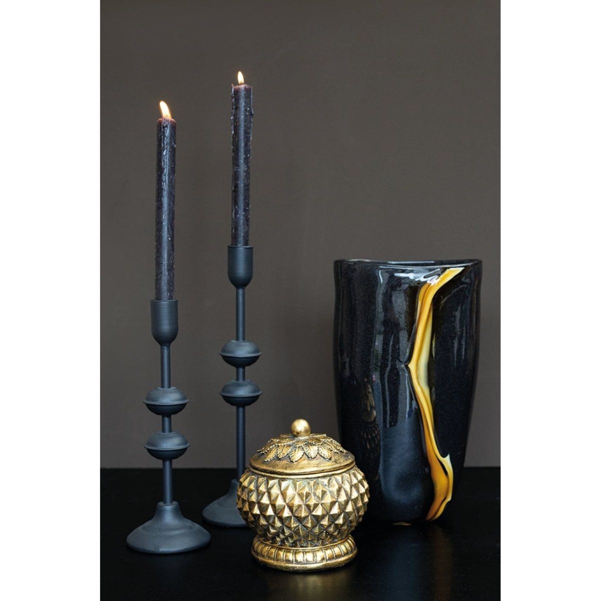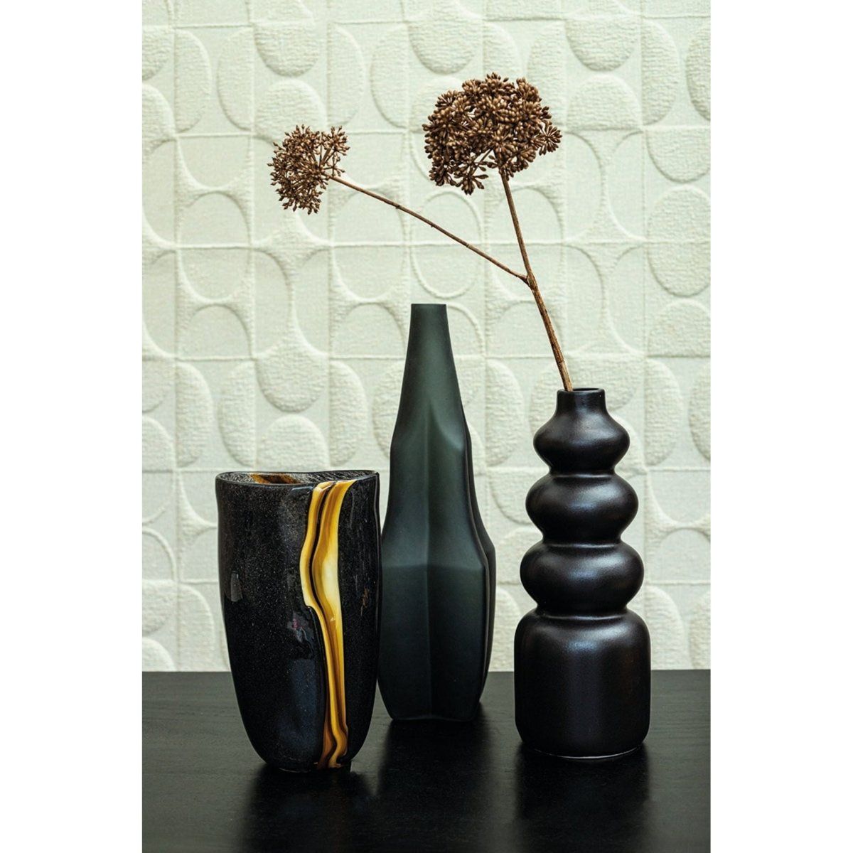 Glass vase - Nicho Black with gold stripe