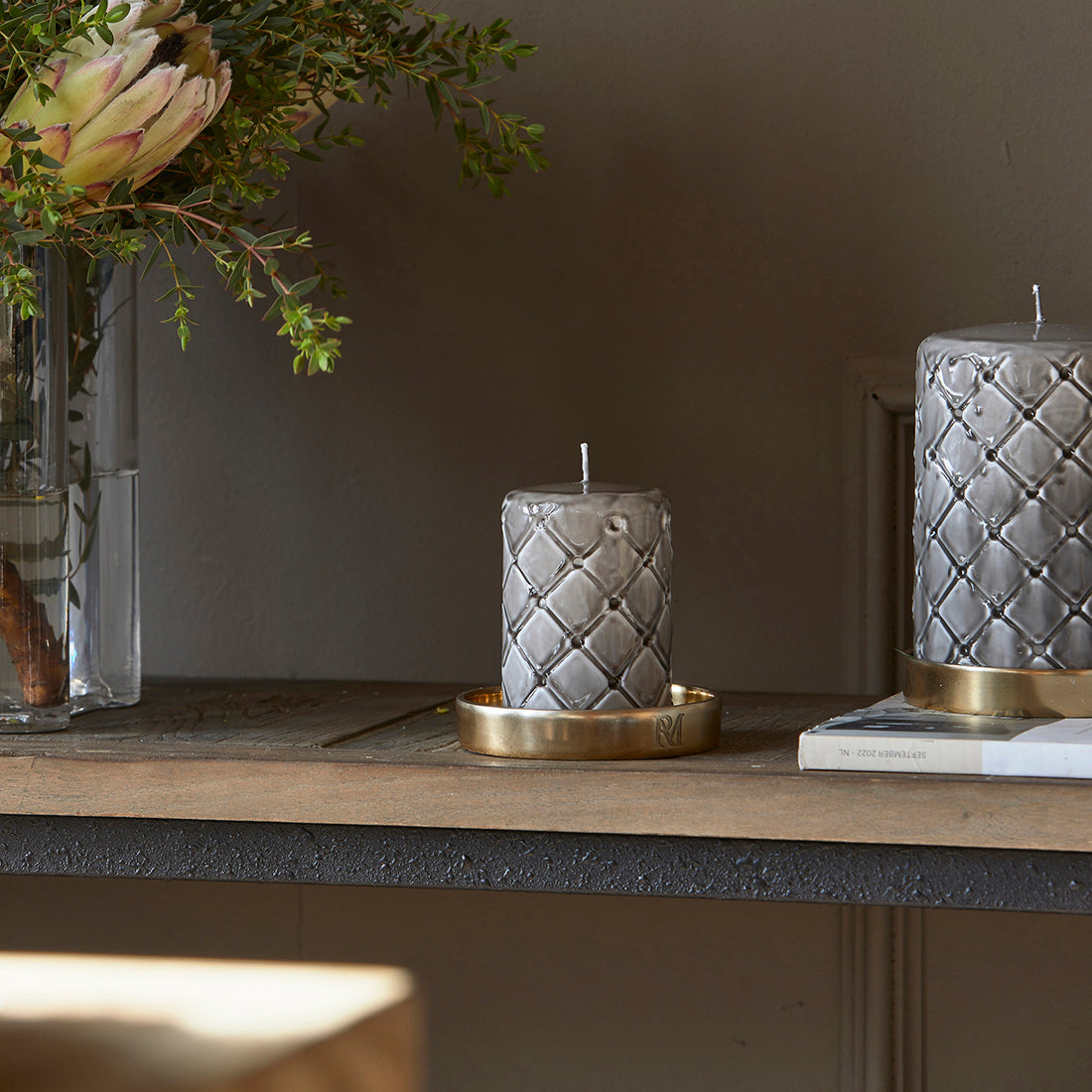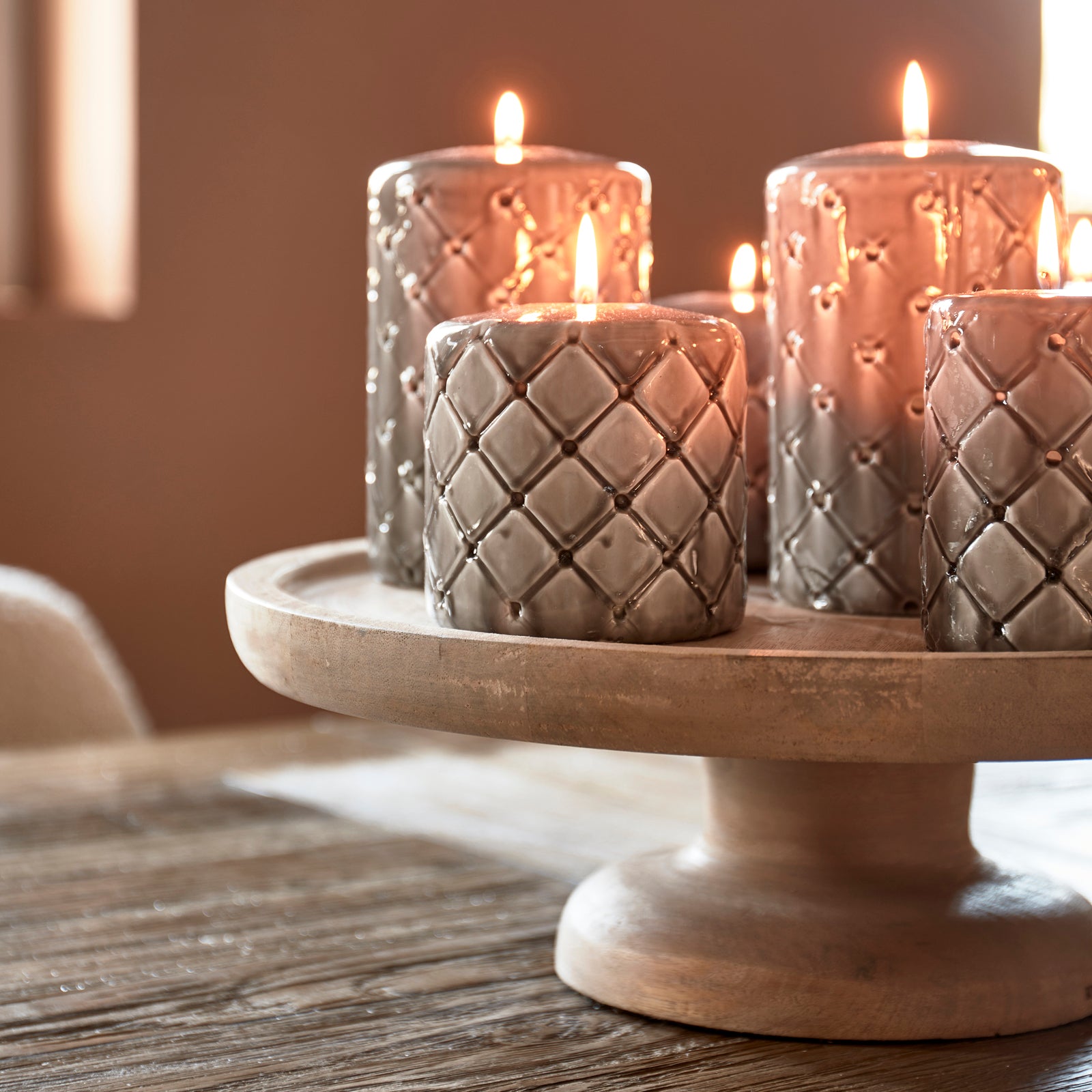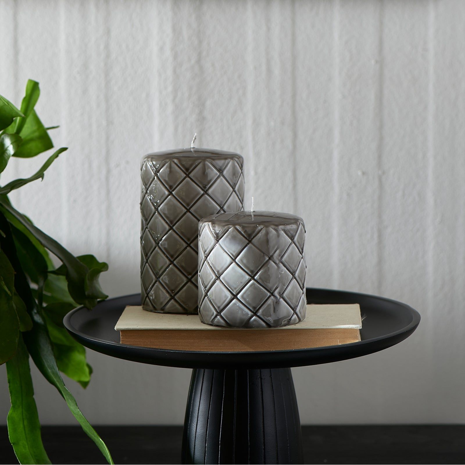 Stumpenkerze Beige, Rautenmuster, Paraffin (ØxH 7x10) - Pillar | Rivièra Maison
