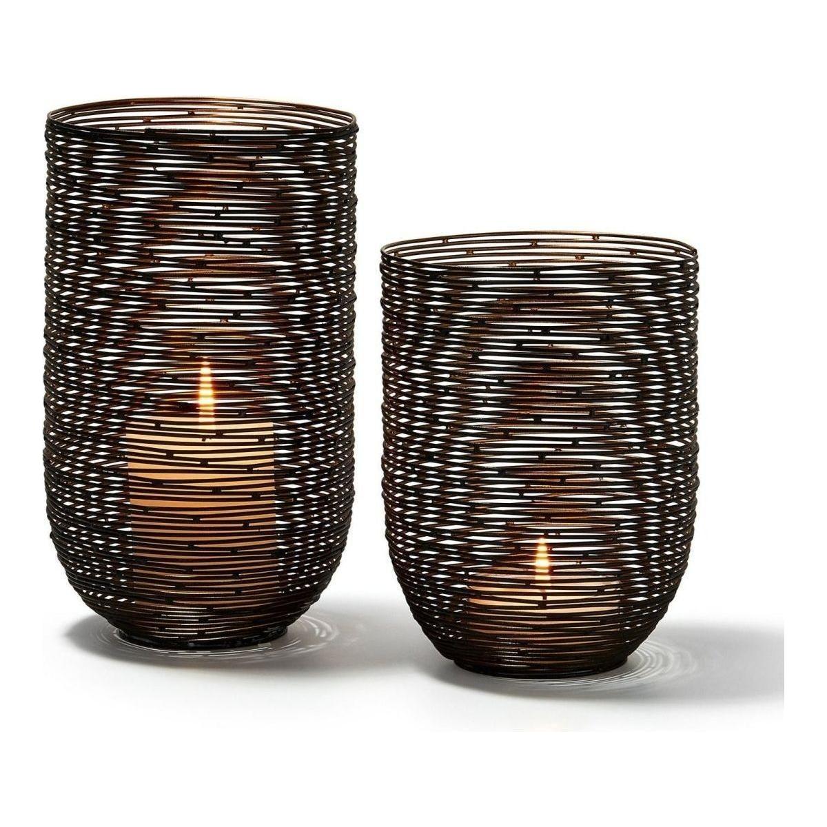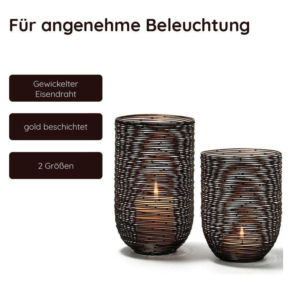 The wound wire forms into a sturdy cylinder, which provides the new home for XXL tea lights and medium-sized candles. Matt black exterior, in brilliant contrast to the gold-colored interior.