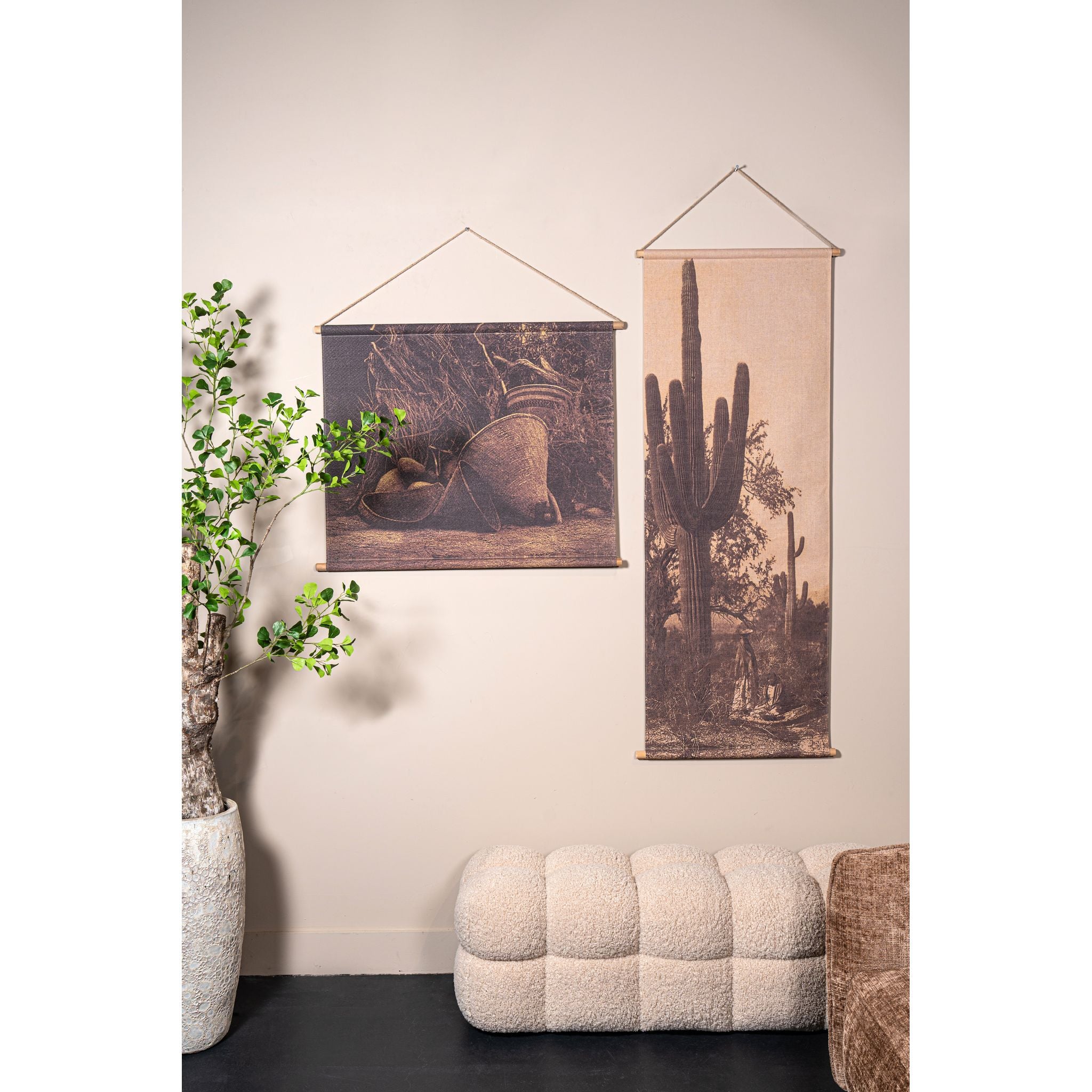 Das Nimrod Bild in Hellbraun mit großen Kakteen ist ein ruhiges und zugleich ausdrucksstarkes Kunstwerk, das die stille Schönheit von Wüstenlandschaften einfängt. Gefertigt aus Leinen, Jute und Holz in halb handgefertigter Ausführung, vereint dieses Bild natürliche Materialien mit einer sanften, champagnerfarbenen Farbwelt. Das markante Kaktusmotiv wirkt klar und elegant und bringt organischen Charakter sowie eine entspannte Atmosphäre in dein Zuhause.