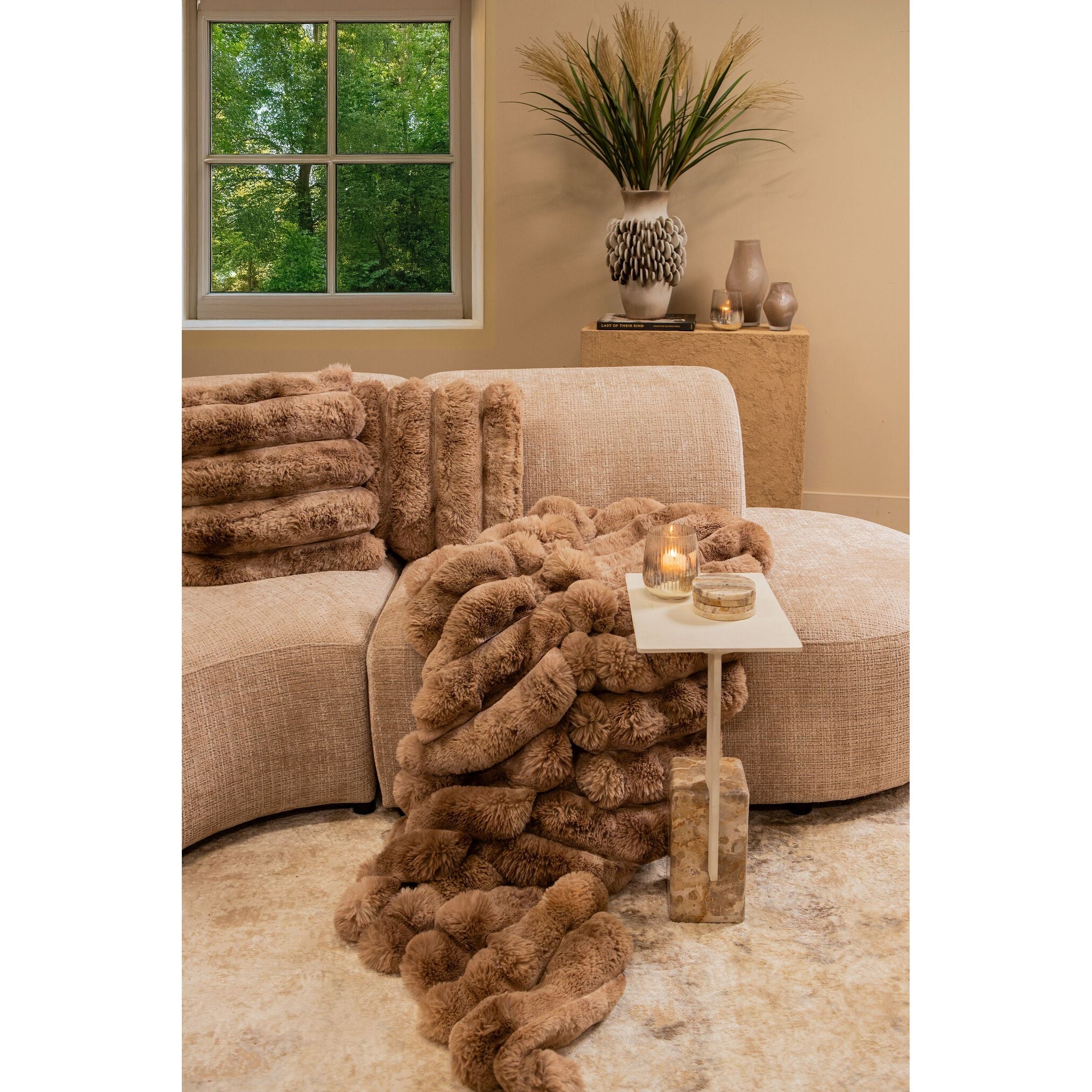 Angenehm weich und einladend sorgt dieses Kissen für eine gemütliche und zugleich gehobene Atmosphäre in modernen wie auch klassischen Einrichtungen. Die flauschige Oberfläche und die komfortable Füllung bieten langanhaltenden Komfort, während der verdeckte Reißverschluss eine nahtlose, elegante Optik bewahrt. Ob als ausdrucksstarkes Highlight auf dem Sofa, kombiniert mit weiteren Textilien oder dekorativ auf dem Bett arrangiert – das Divvo Kissen bringt zurückhaltenden Luxus und stilvolle Struktur in dein Zuhause.