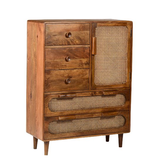 Sideboard – Solid Mango Wood, Vintage Design, Wooden Legs, Retro Details – Anna | Brix