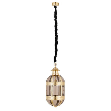 Hängelampe aus Glas und Metall, antik-messingfarbene Optik, ovales Design, mit Baldachin, S – Mikk | PTMD
