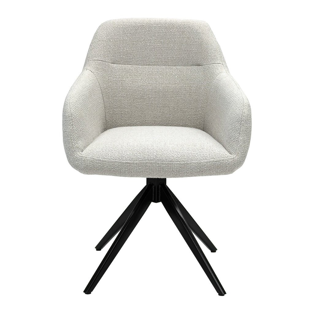 Der Drehstuhl Ravi in Weiß ist ein stilvolles Statement moderner Eleganz und mühelosen Komforts. Mit seiner klaren Silhouette, der edlen Polsterung und der sanften Drehfunktion bringt er eine leichte Luxus-Ausstrahlung in jeden Ess- oder Loungebereich und schafft eine Atmosphäre, die frisch und zugleich exklusiv wirkt.