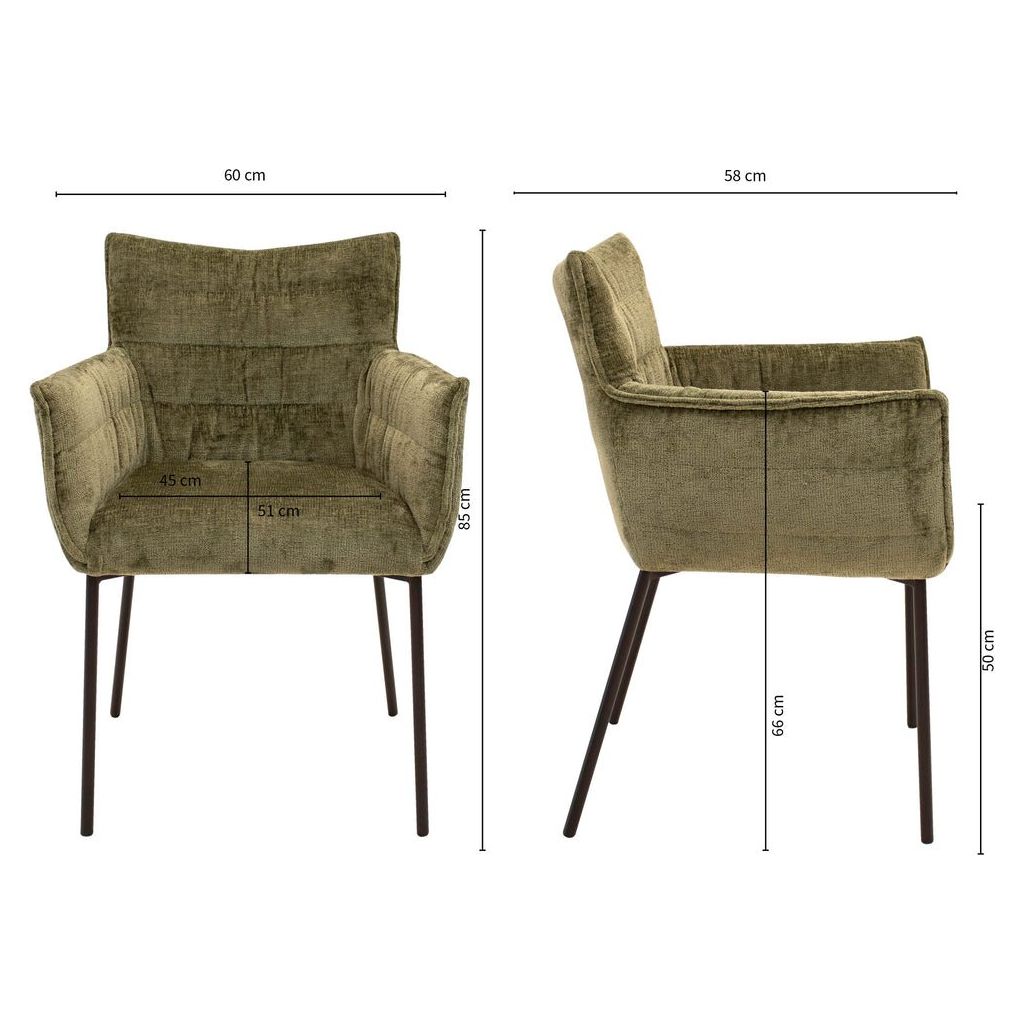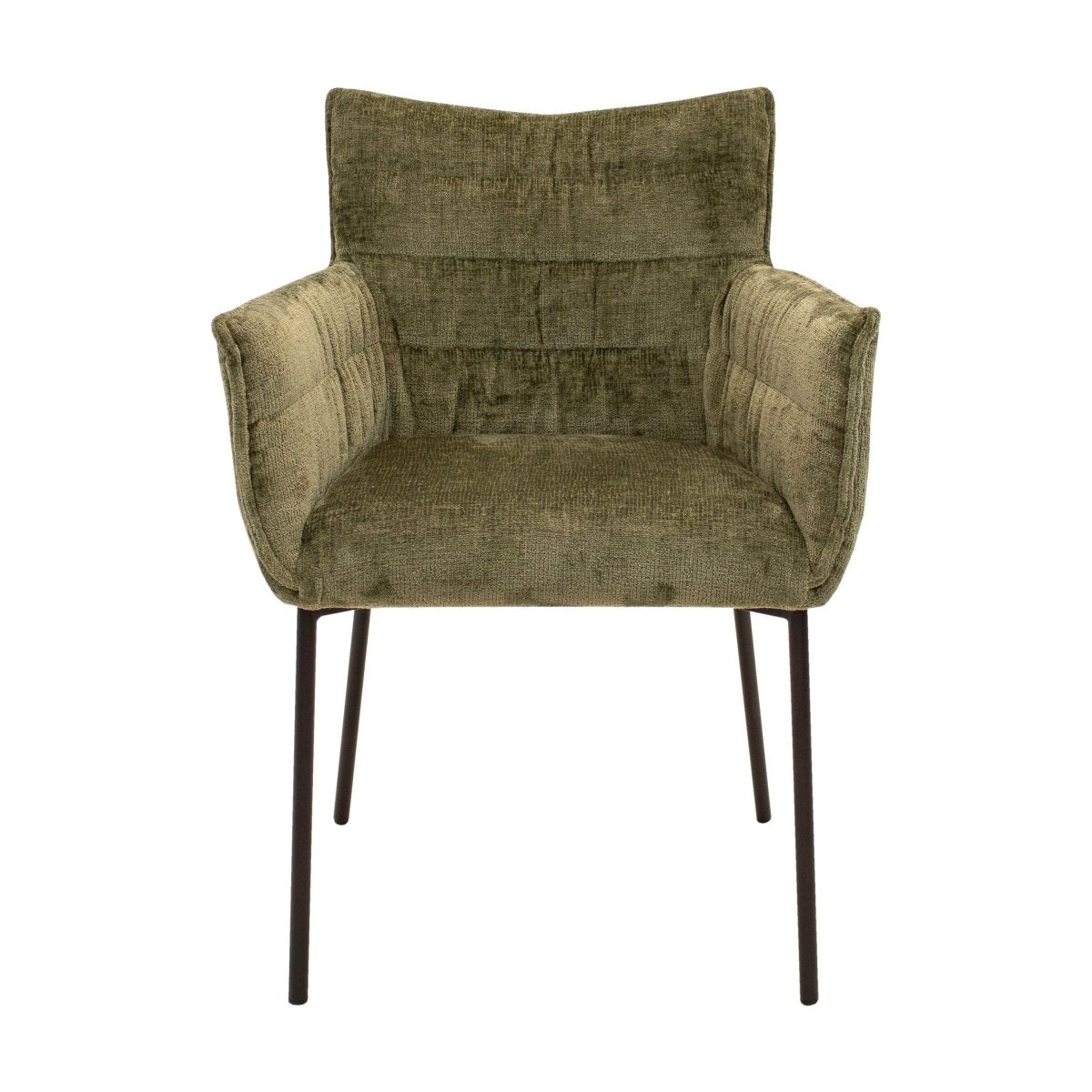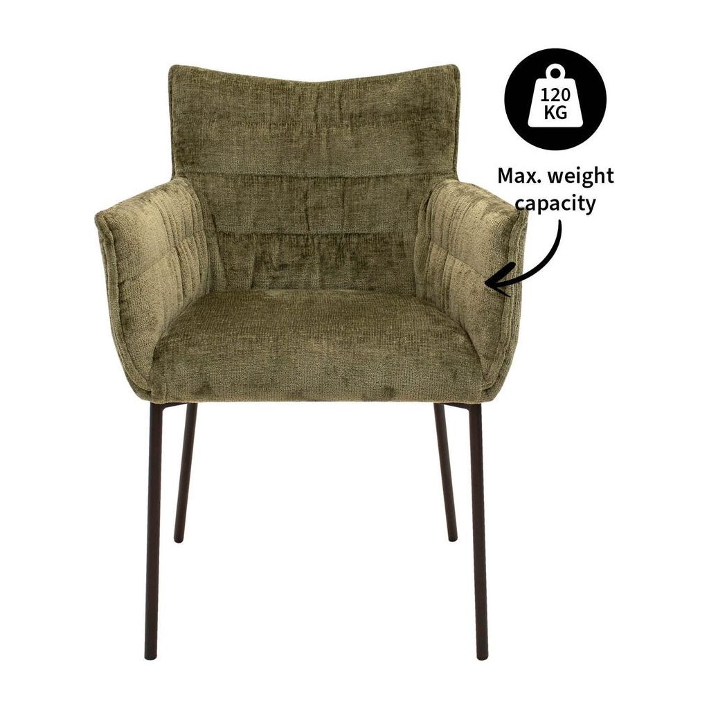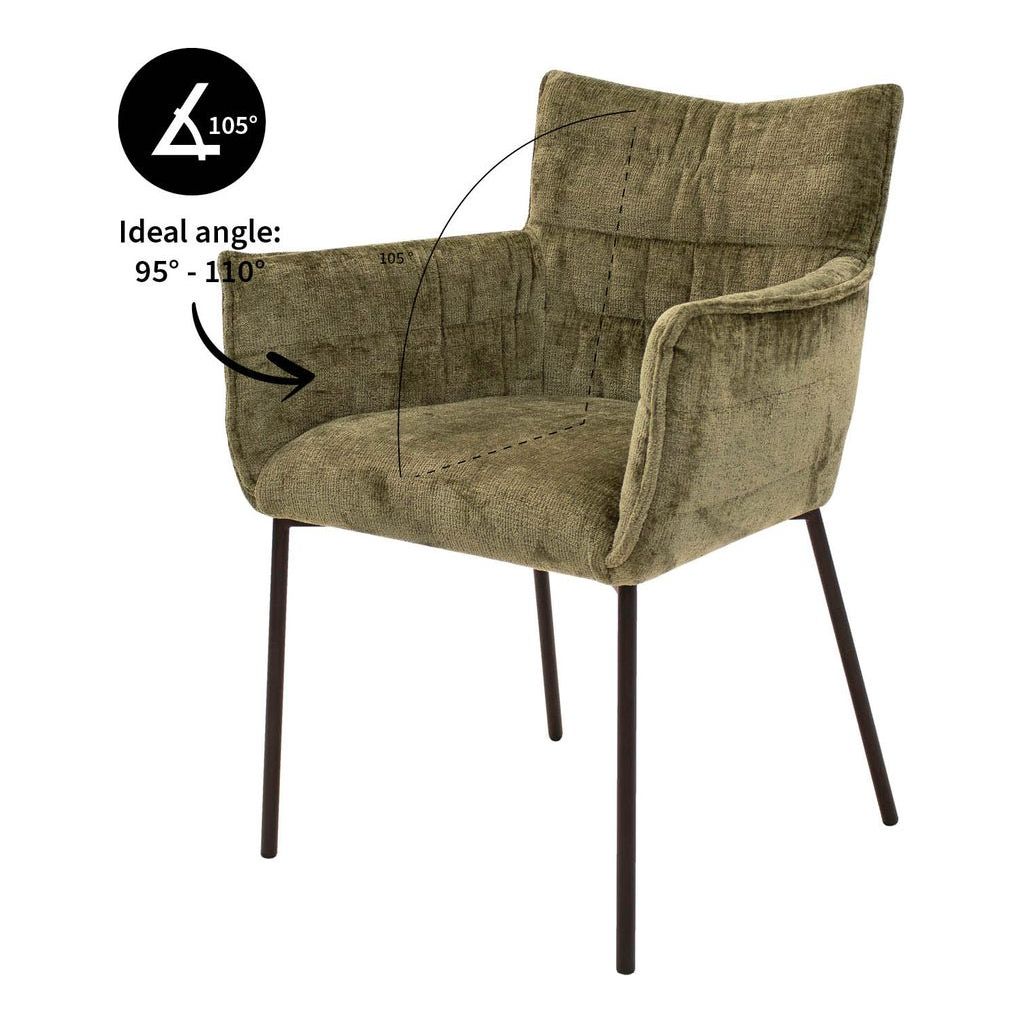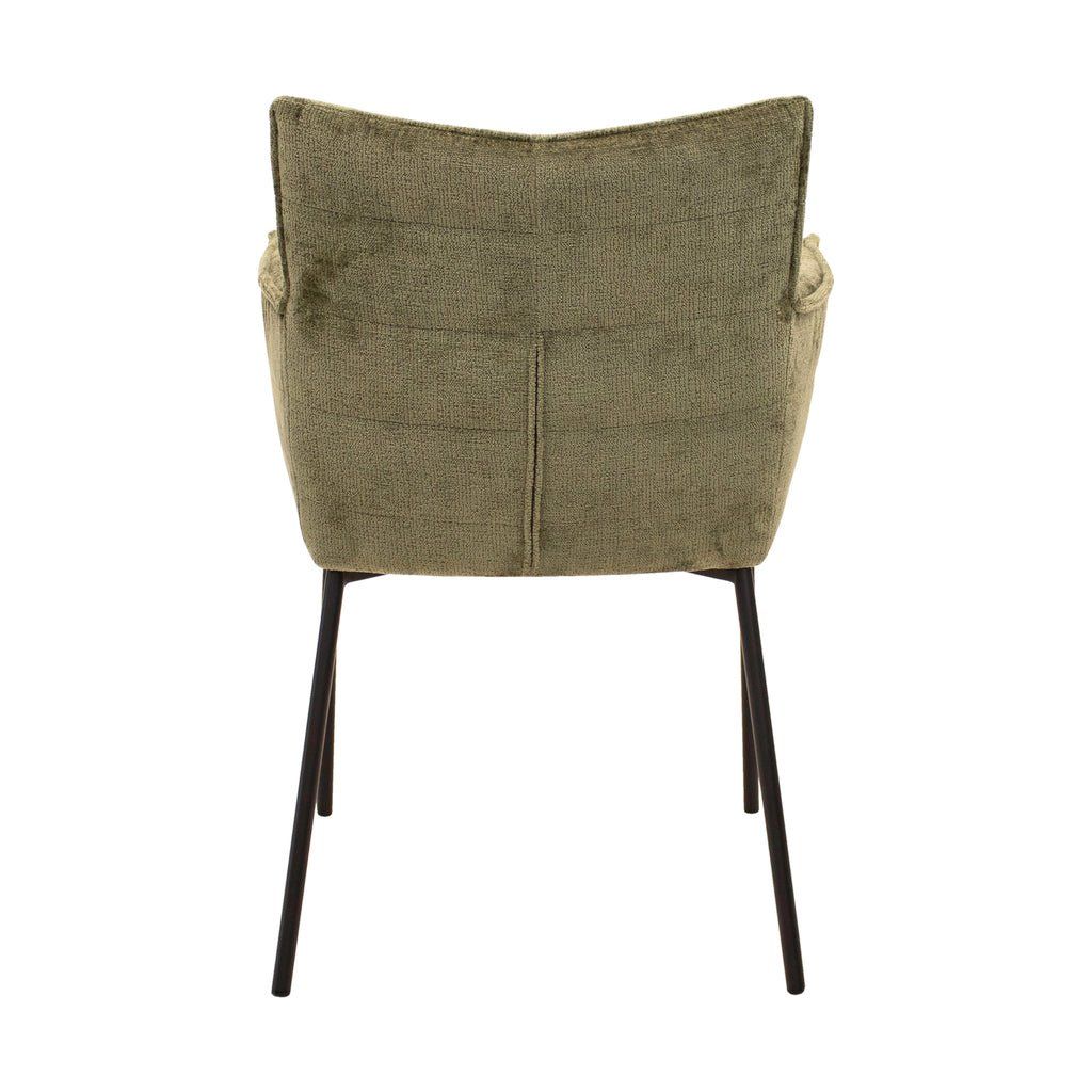 Esszimmerstuhl Weicher Chenille-Bezug, Schwarzes Metallgestell, Armlehnen, Gepolstert – Goos | Kick Collection
