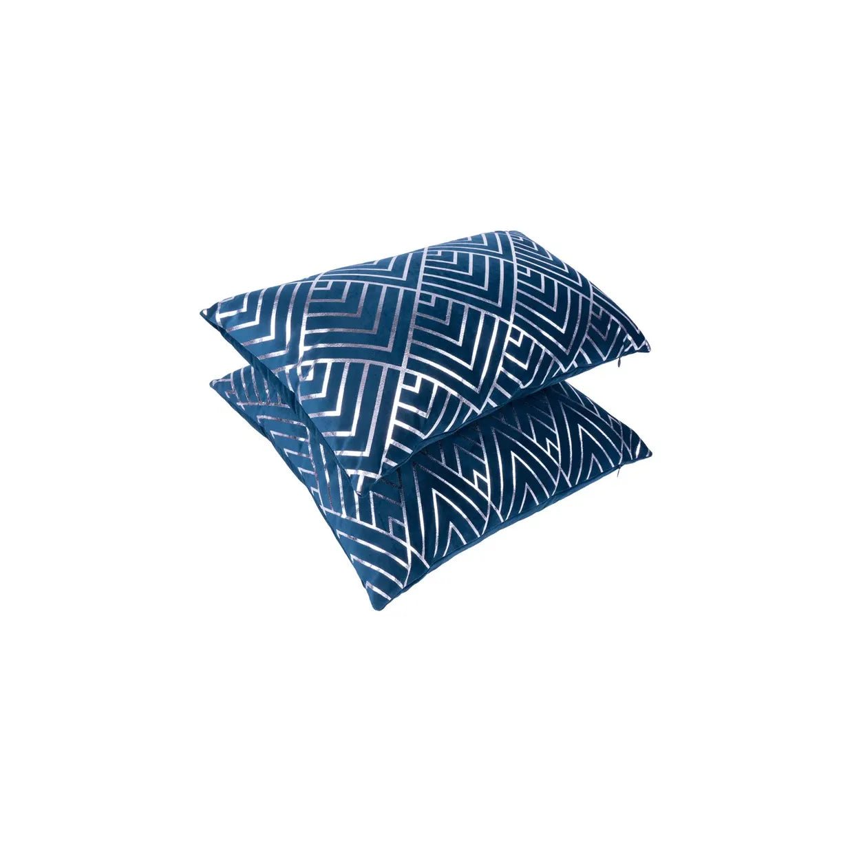 Das Dekokissen Prisma 225 2er‑Set von Kayoom vereint stilvolles Design mit funktionalem Komfort. Die Kissenbezüge bestehen zu 100 % aus Polyester und sind in zwei eleganten Farbkombinationen erhältlich: Blau/Silber und Taupe/Gold. Die Vorderseite jedes Kissens ziert ein glamouröses Muster im Retro-Stil, während die Rückseite schlicht gehalten ist. Diese Kombination ermöglicht vielseitige Einsatzmöglichkeiten und passt sich verschiedenen Einrichtungsstilen an. Die weiche Haptik lädt zum Verweilen ein und sorgt für Gemütlichkeit in jedem Raum.