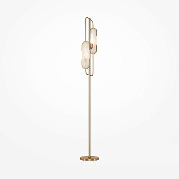 Die Stehlampe MOD099FL‑02G aus der Serie „Marmo“ von Maytoni zeigt ein luxuriöses Design mit natürlichen Materialien und edler Verarbeitung. Sie verbindet ein Gestell in Messing‑/Goldoptik mit dekorativen Elementen aus Naturstein oder Alabaster‑Platten — ein visueller Ausdruck von Reinheit und Erhabenheit.