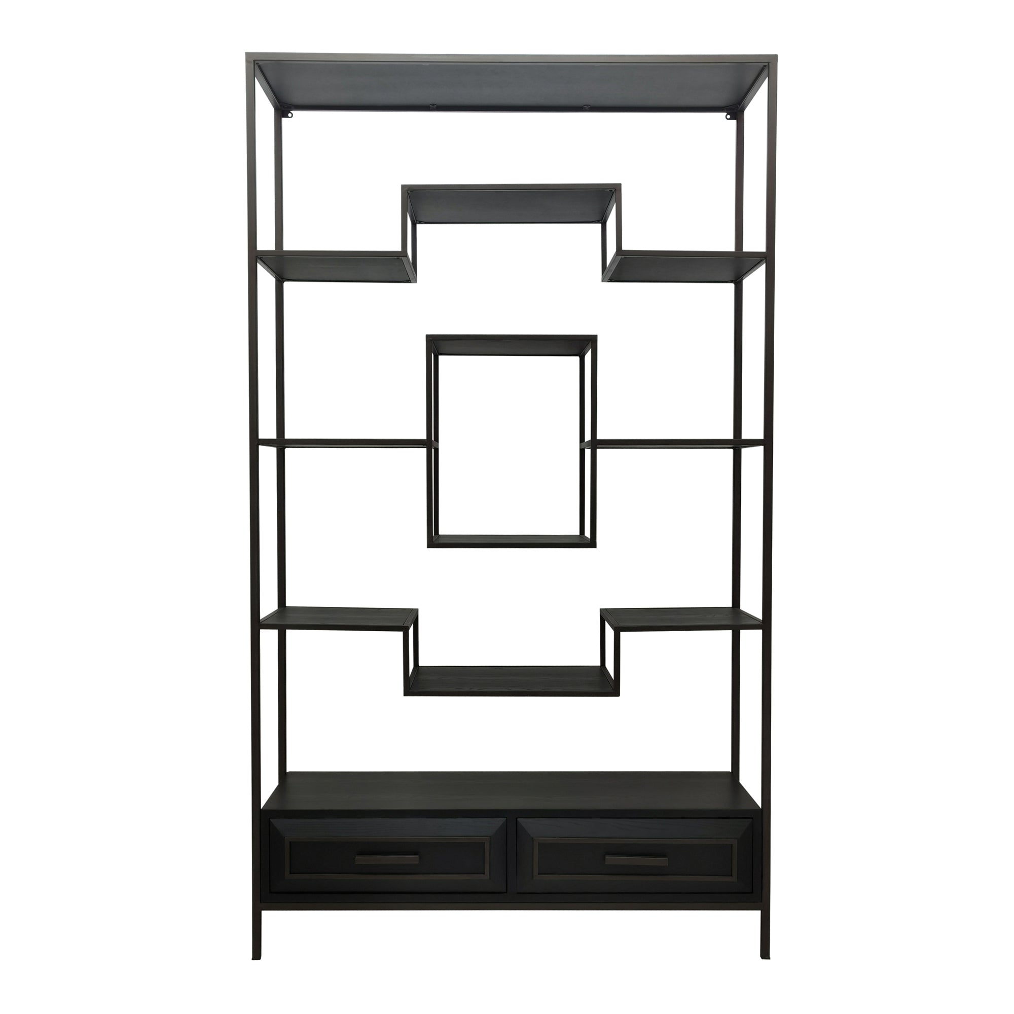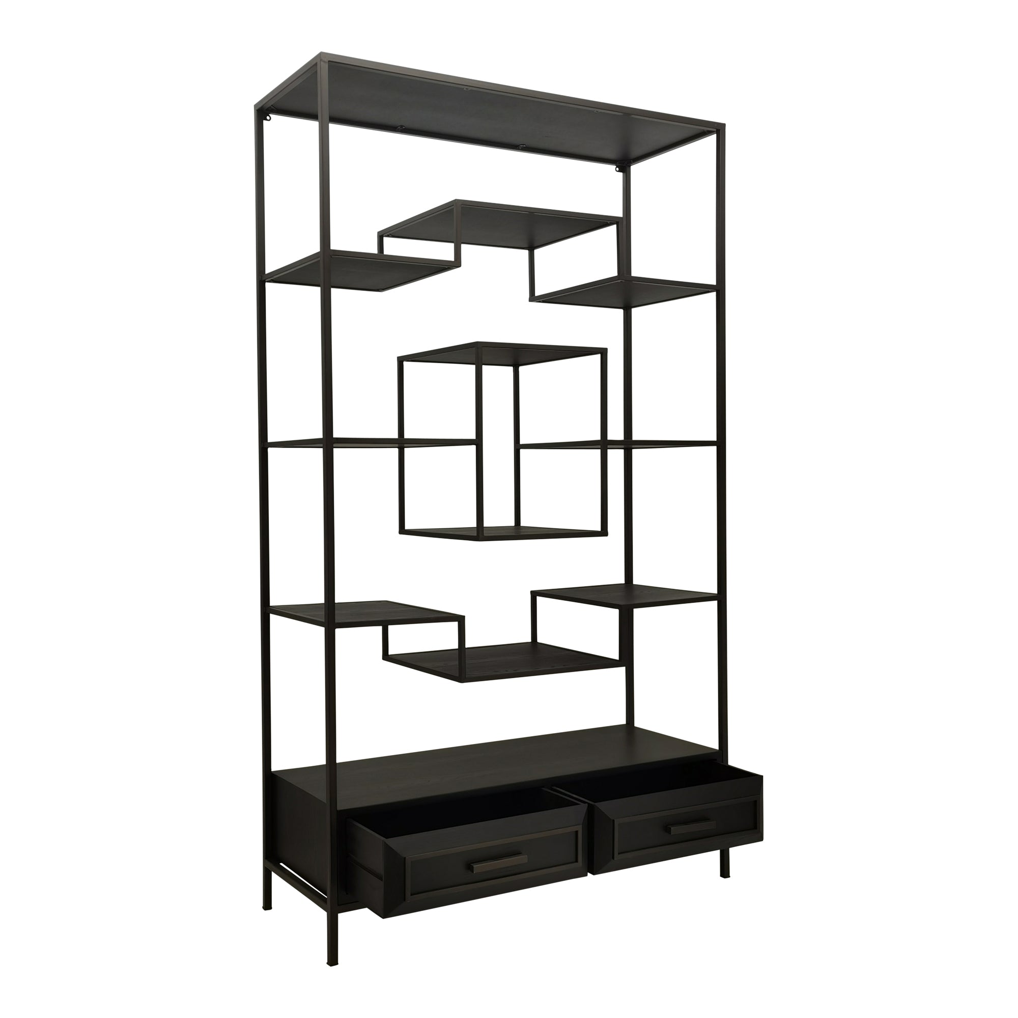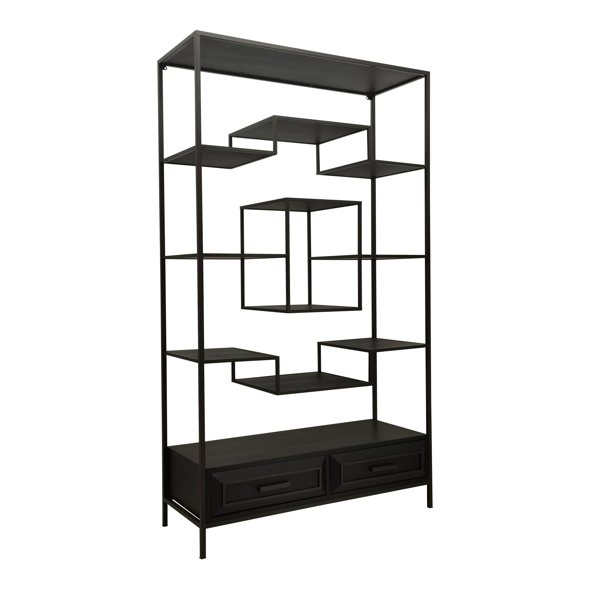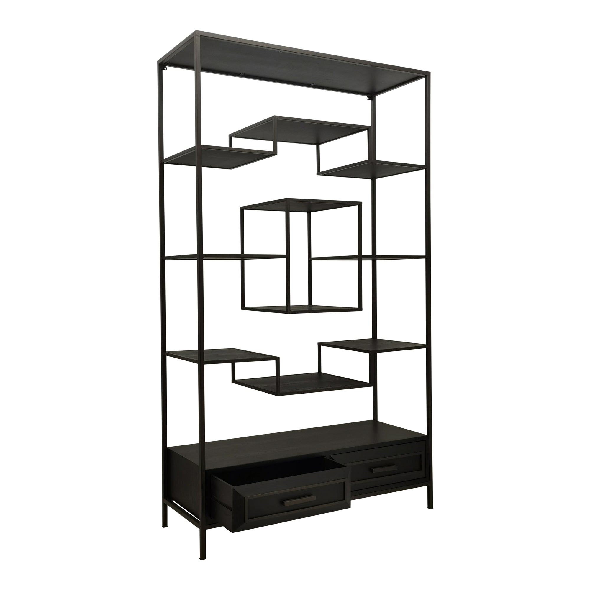 The Lixly open cabinet by PTMD in black is a stylish expression of modern design and architectural elegance. Crafted from wood and complemented by an iron frame, it combines clear structure with a striking and minimalist aesthetic. The deep black finish accentuates its expressive silhouette, while the varied arrangement of compartments creates a lively composition that adds dynamism and modern character to your interior.