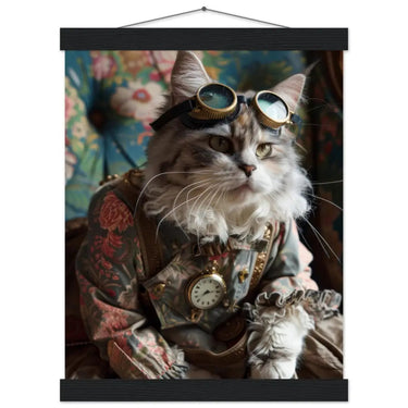 Schulposter - Steampunk-Vintage Minskin Katzenmotiv, mattes FSC-Papier, magnetische Holzleisten | St Tropez Art